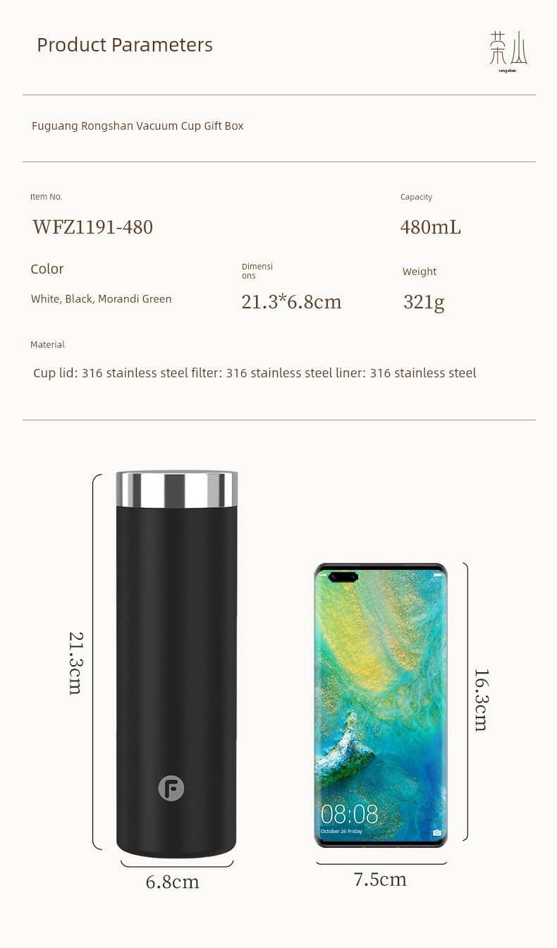 Fuguang Heat Preservation Cup Tea Water Separation 316 Stainless Steel Men's Gift for Ladies Gift Box One Cup Dual-Use Tea Cup