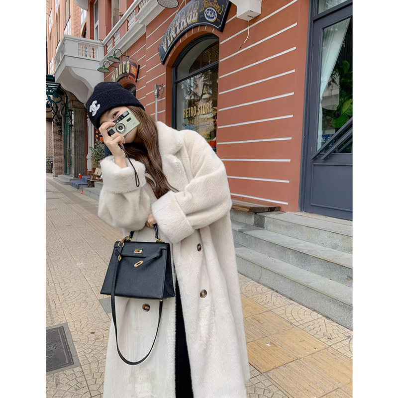 Furry Nylon Outerwear Women 2024 New Autumn and Winter Thickened Long Imitation Mink Cashmere Loose Slimming Environmentally Friendly Furry Coat