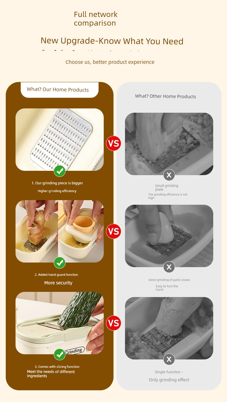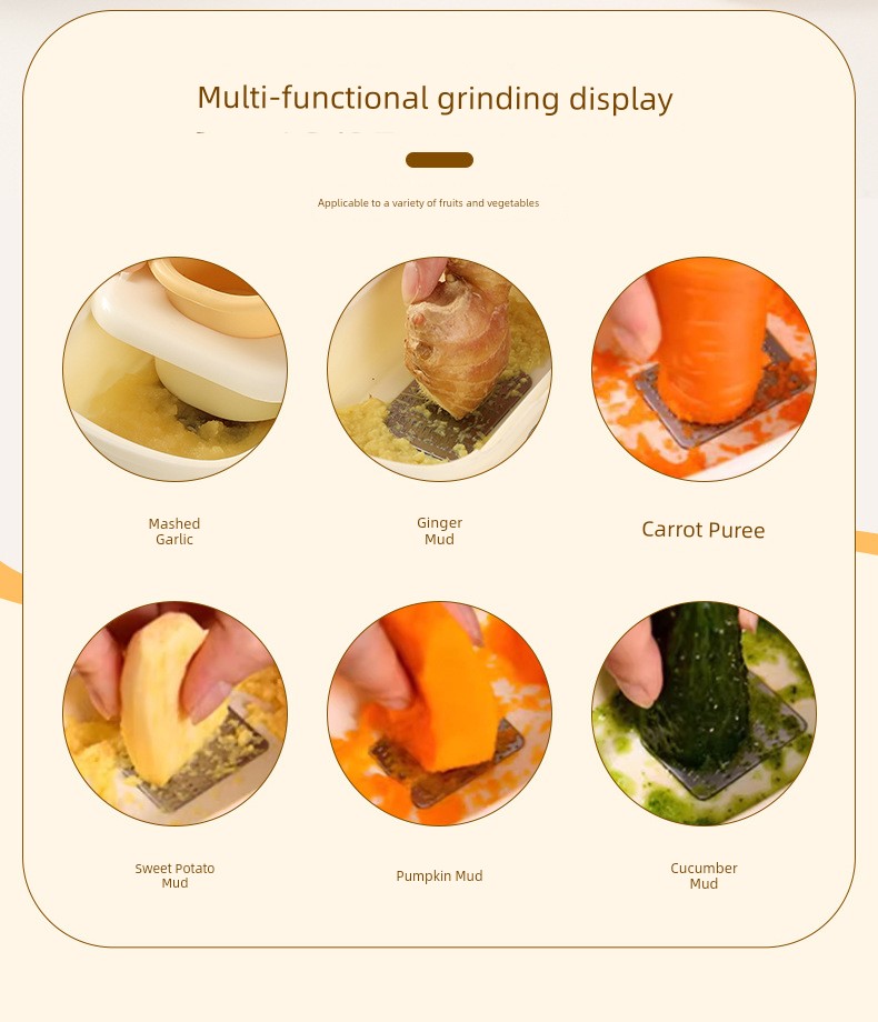 Garlic Grinder Ginger and Garlic Slicer For Home Multi-Functional Onion and Ginger Grinder Complementary Food Cucumber Carrot Manual Rub Fruit Puree