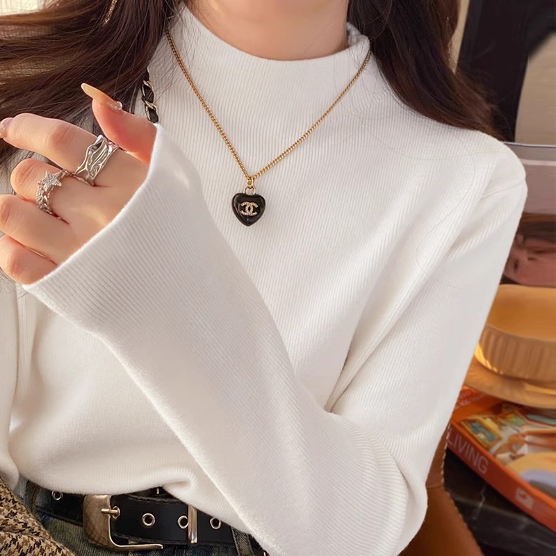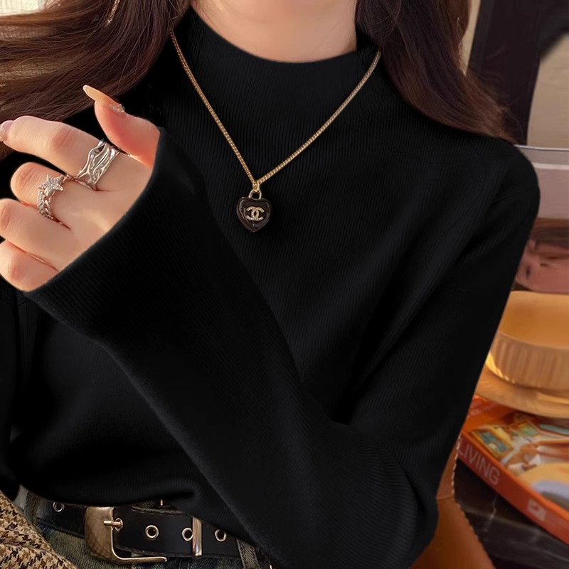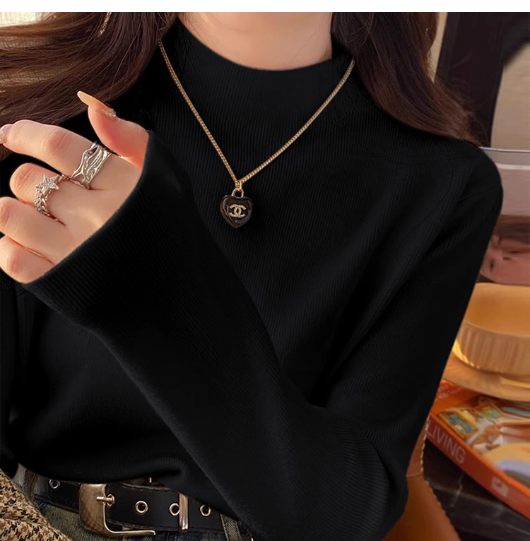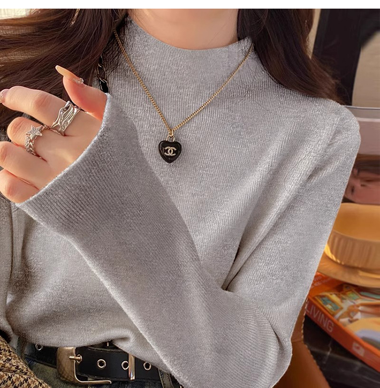 Soft Angora Knit Half-High Collar Base Layer Top for Women - Autumn/Winter Grey Temperament Slim & Warm Inner Wear