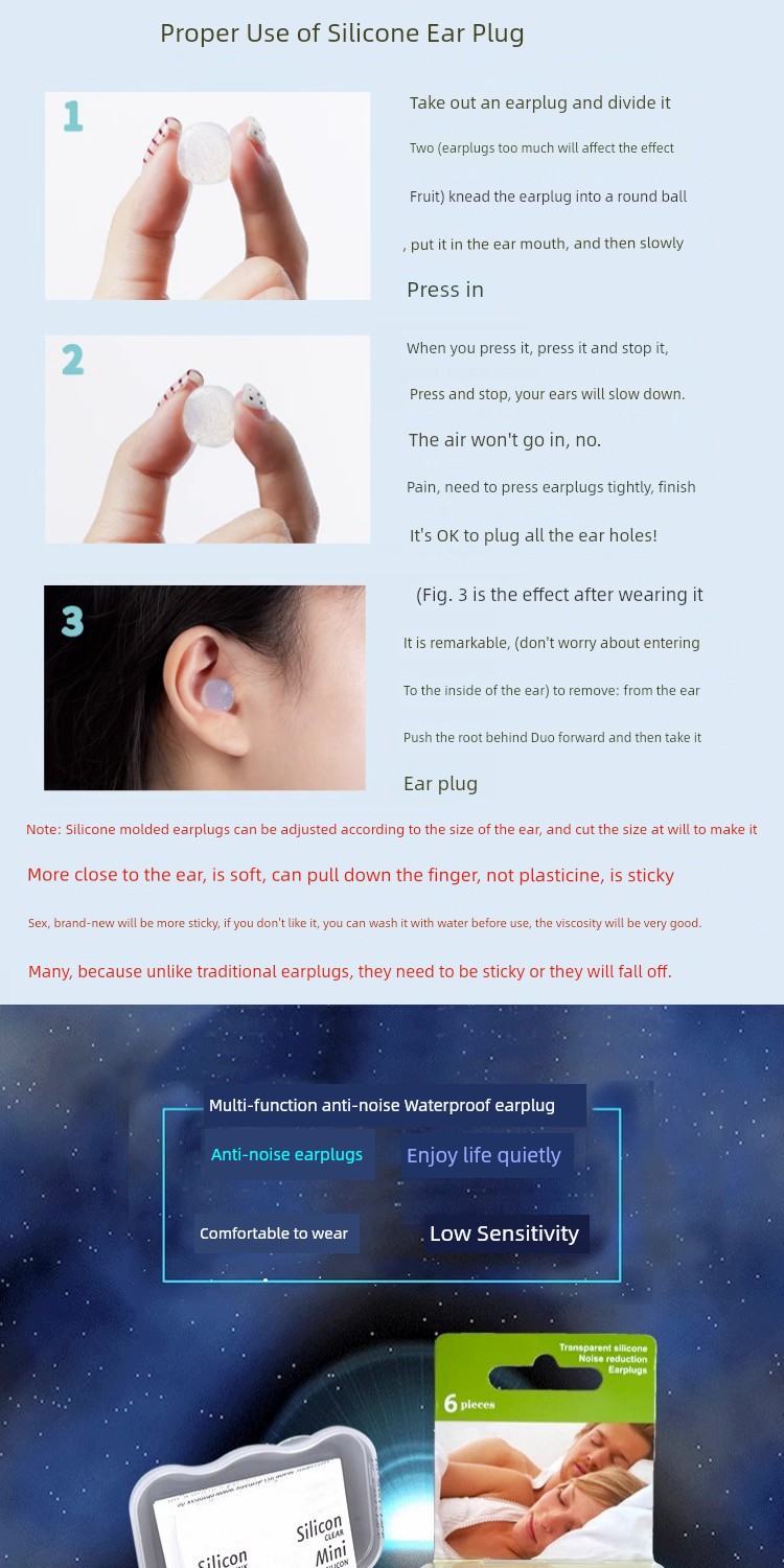German Silicone Earplugs Anti-Noise Super Soundproof Sleep for Sleep Student Dormitory Noise Reduction Handy Gadget Swimming