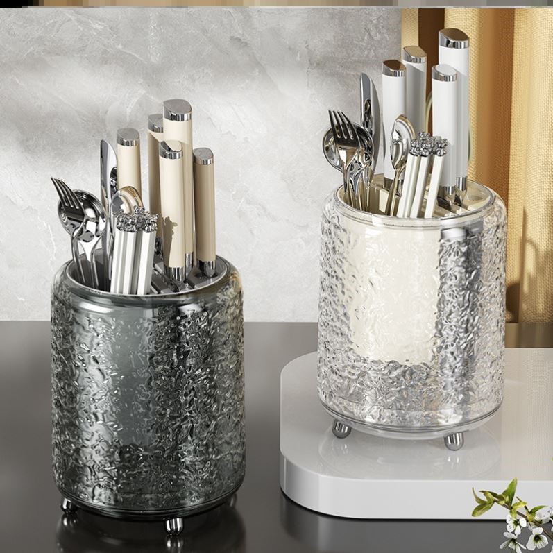 Glacier Pattern Rotate Knife Holder Kitchen Storage Rack For Home Table Top Multi-Functional Chopsticks Cage Chopstick Canister Knife Integrated Storage Box