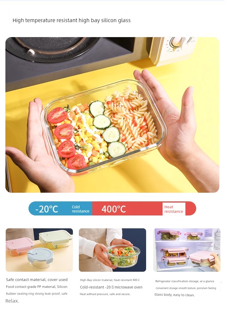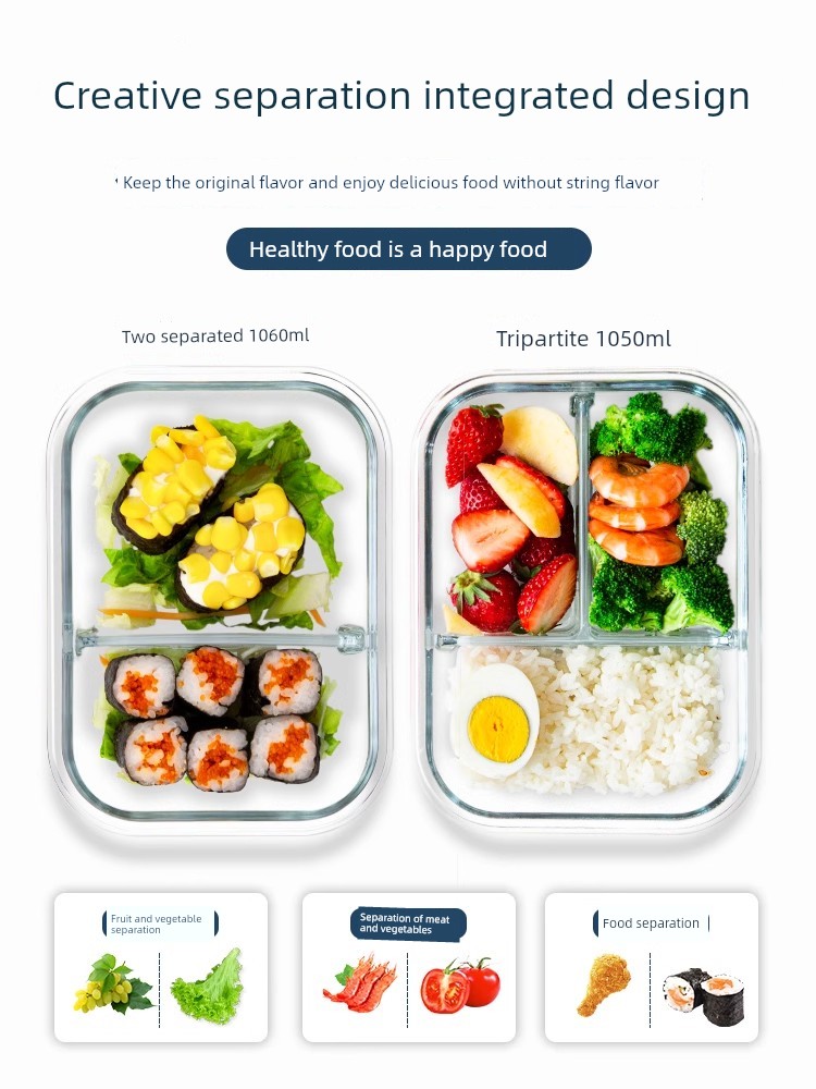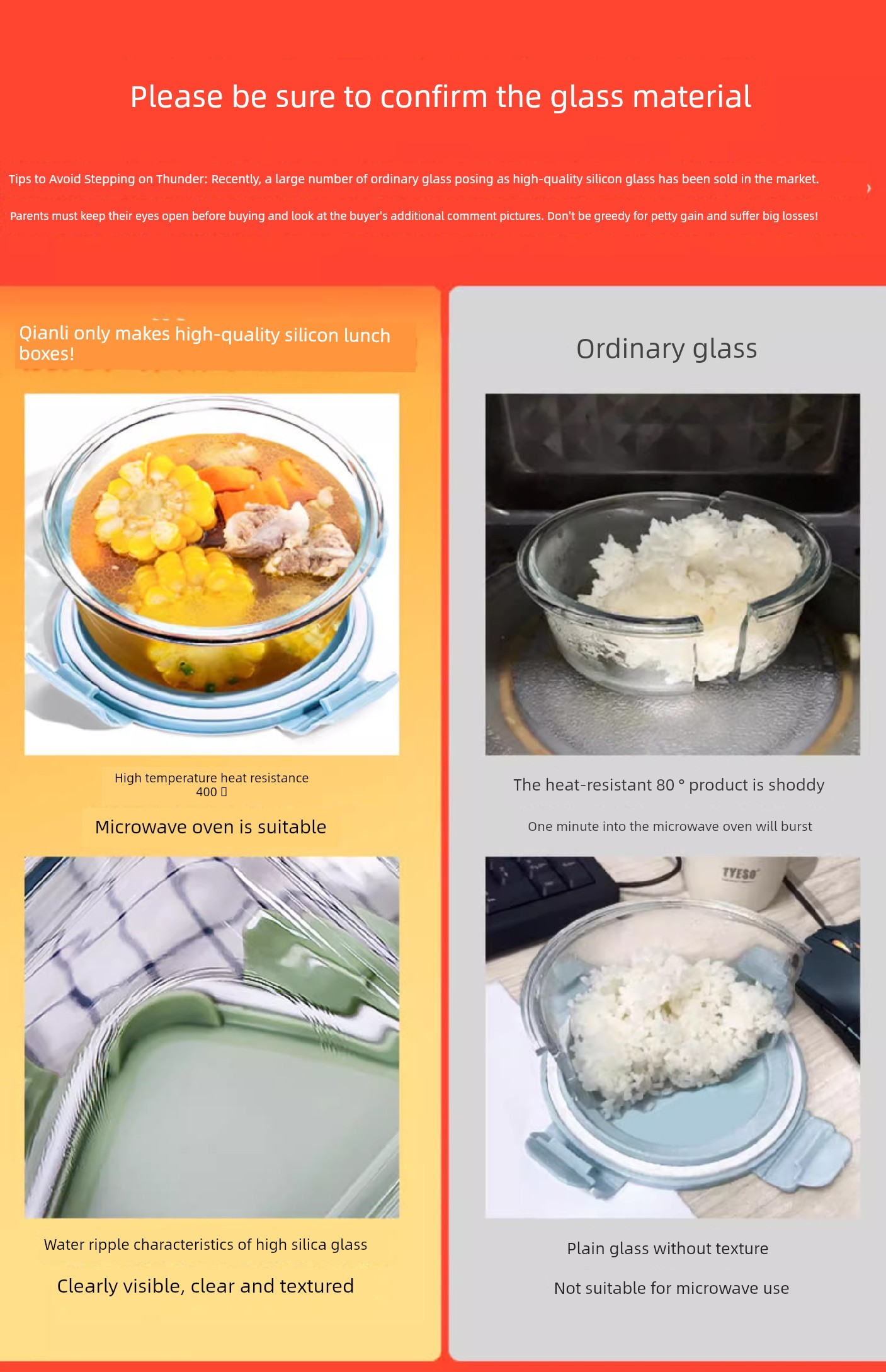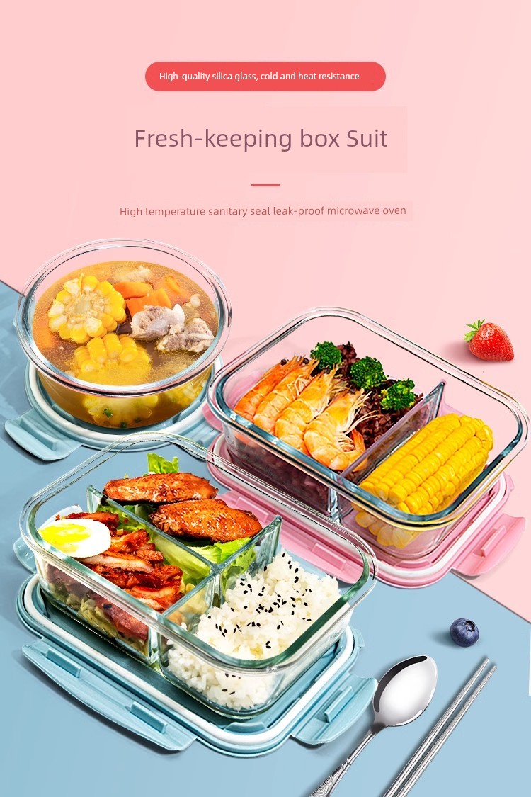 Glass Lunch Box Office Worker with Rice Student Lunch Lunch Box Microwaveable Dedicated for Heating Sealed Freshness Bowl Soup Bowl