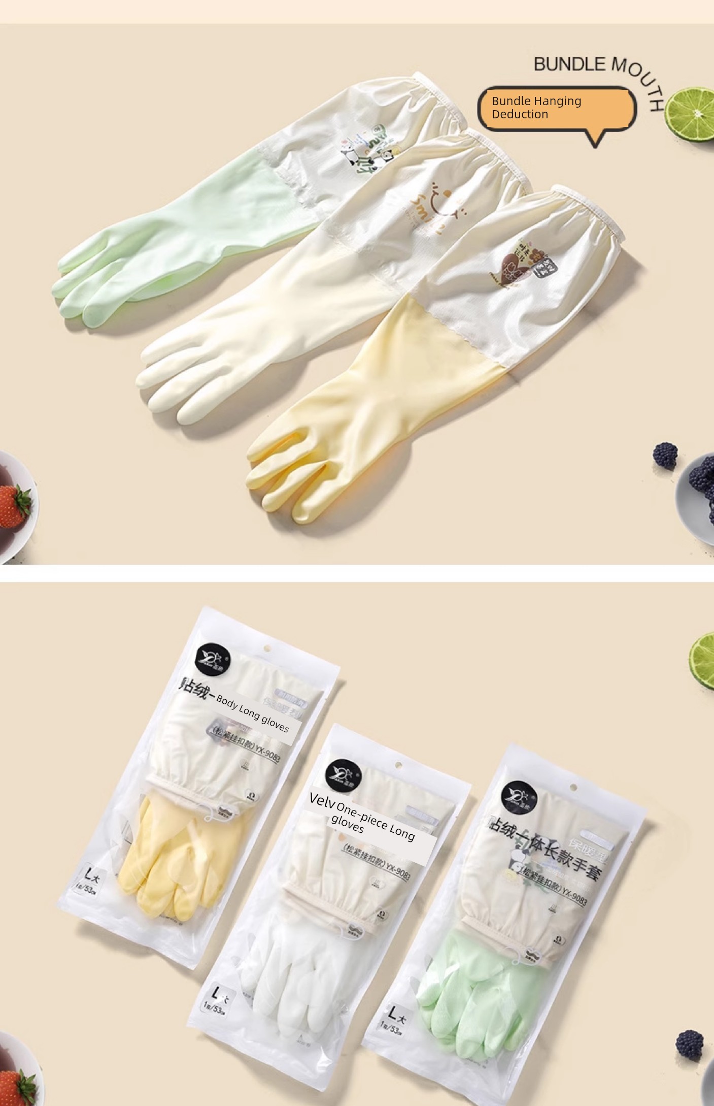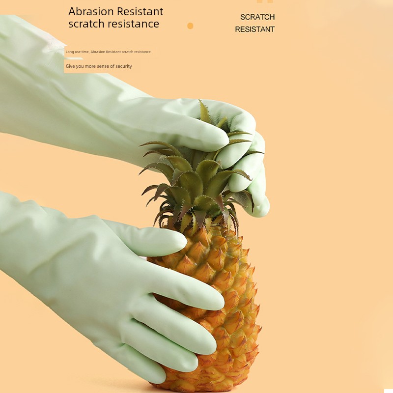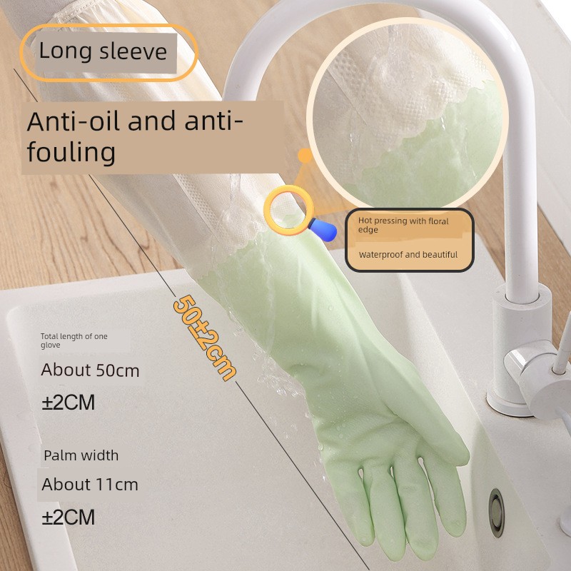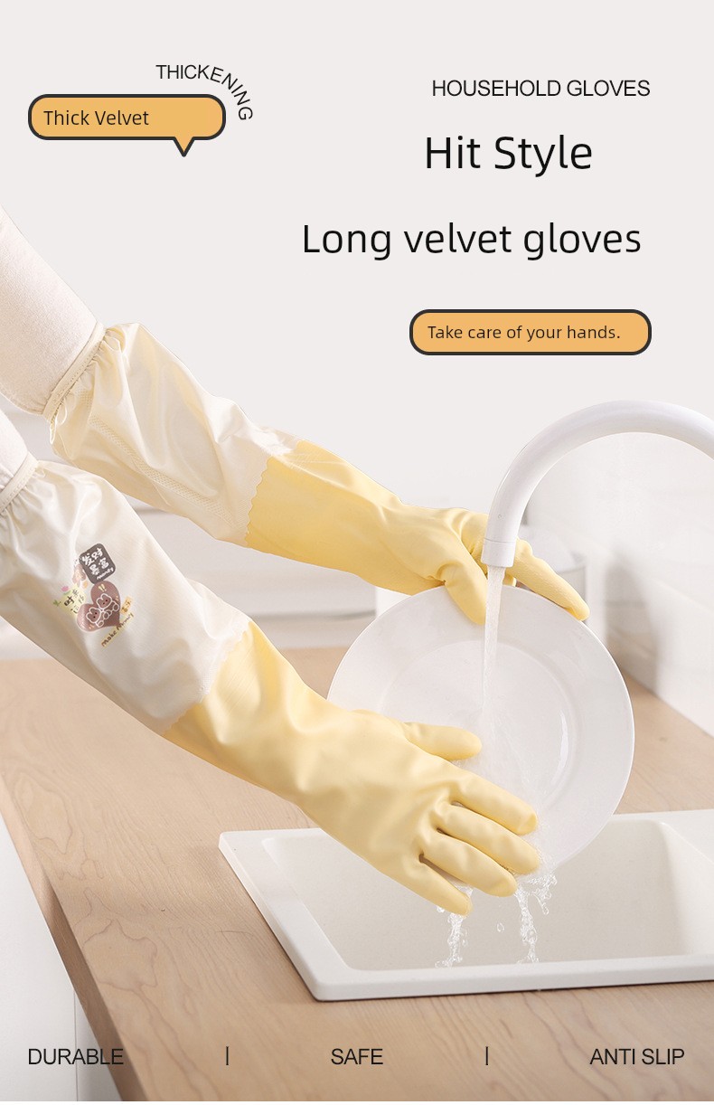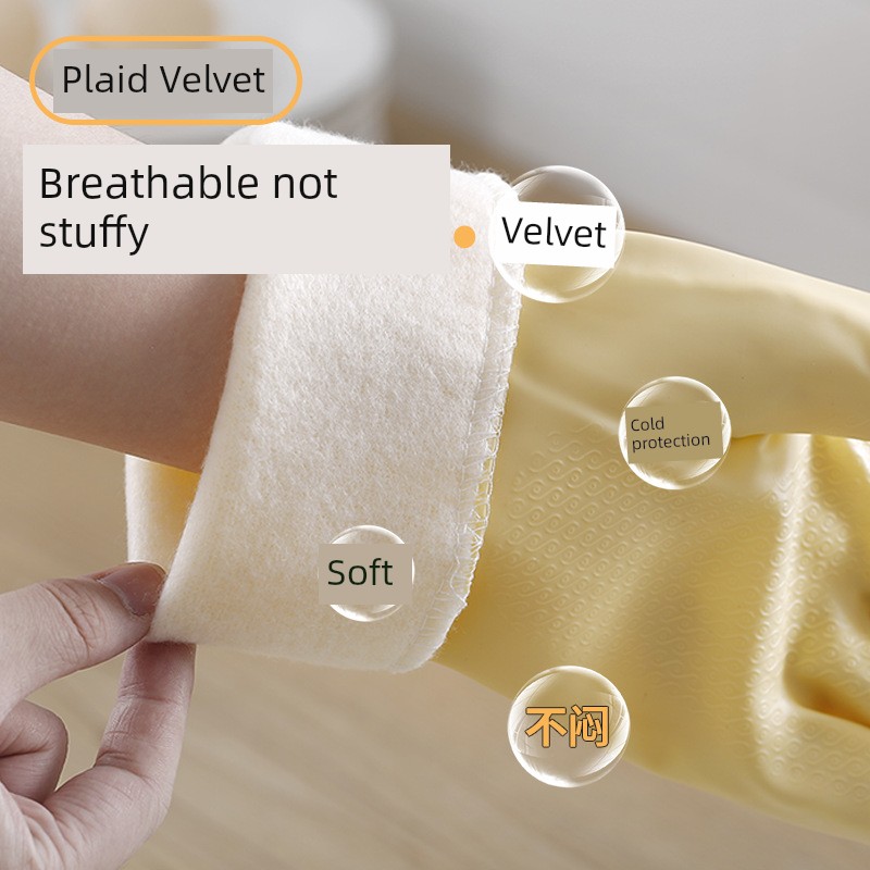 Good-looking Drawstring Top Housework Gloves Dishwashing Fleece-lined Warm Waterproof Lengthened Household Cleaning Laundry Rubber Thickening