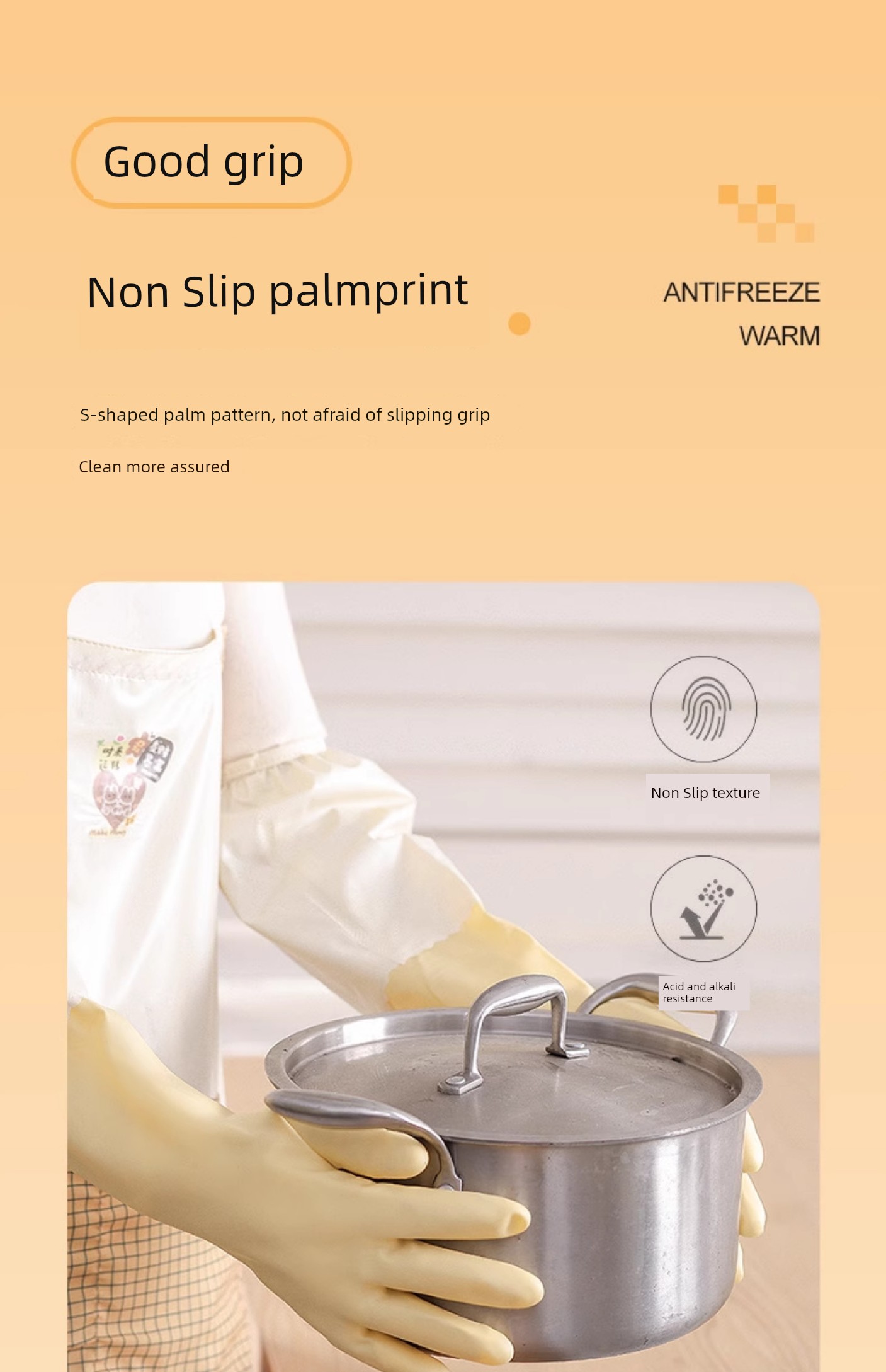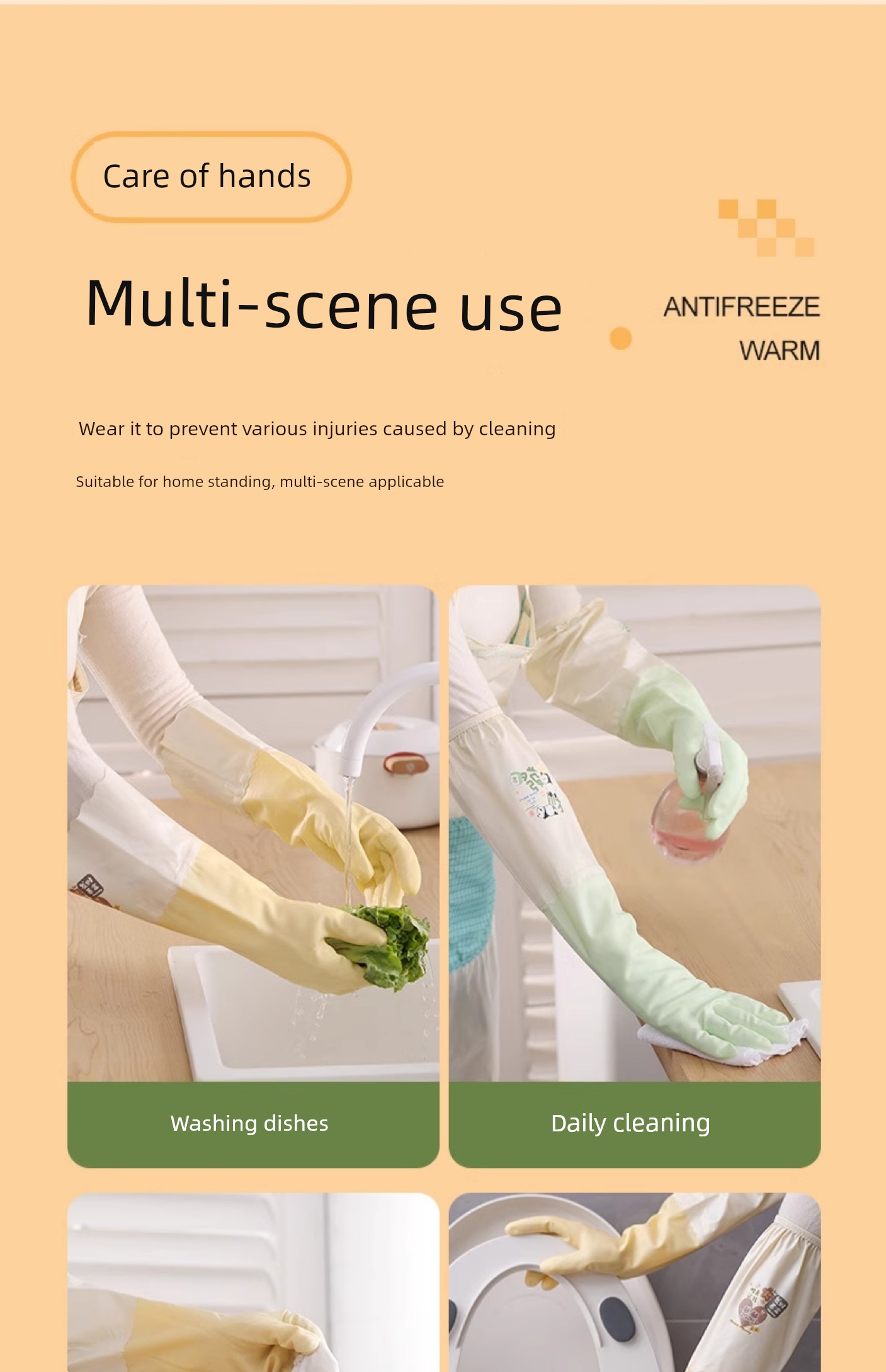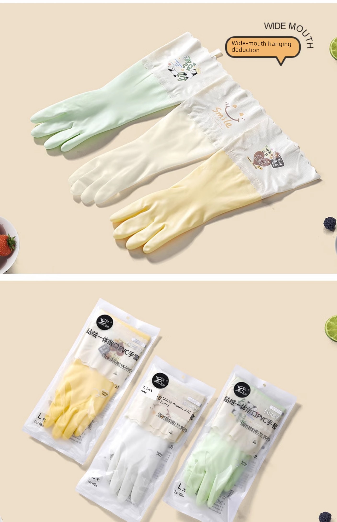 Good-looking Drawstring Top Housework Gloves Dishwashing Fleece-lined Warm Waterproof Lengthened Household Cleaning Laundry Rubber Thickening