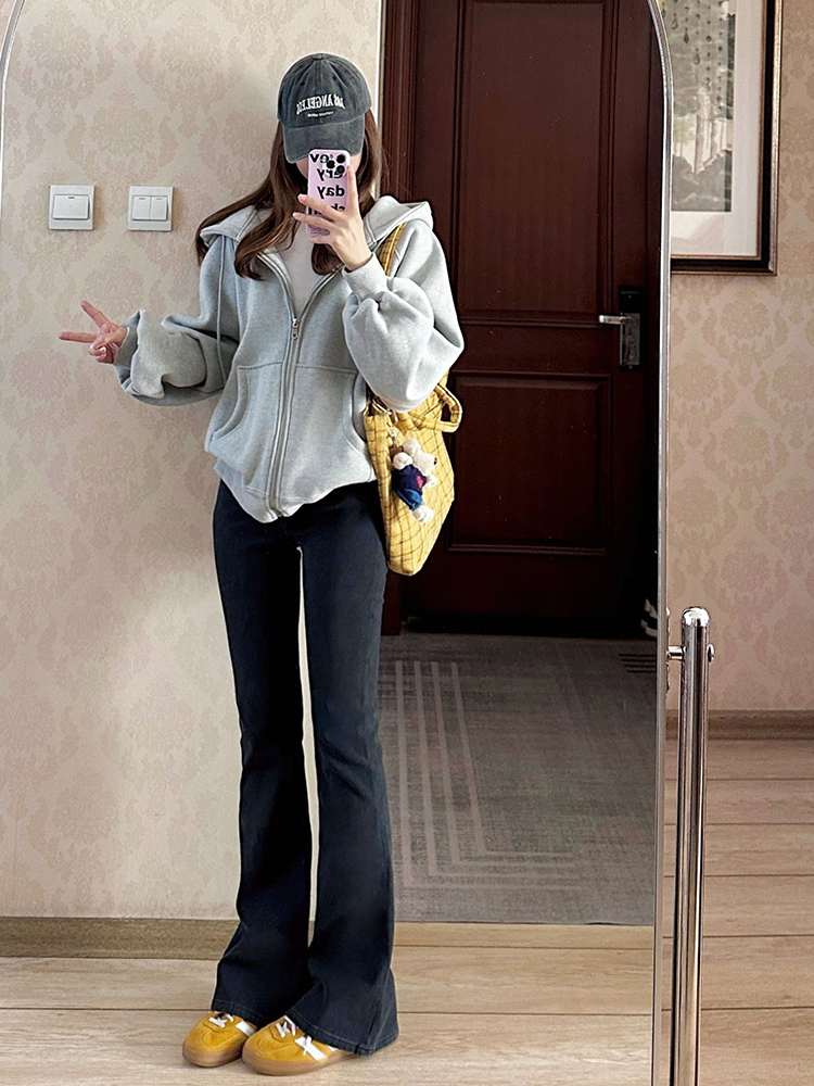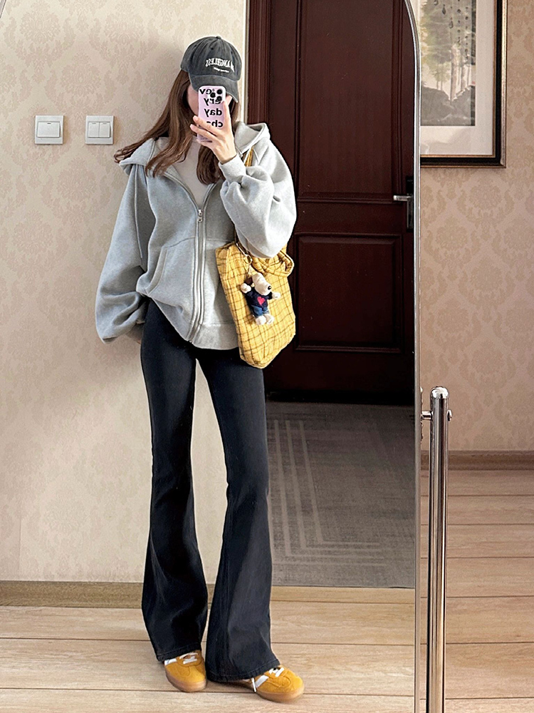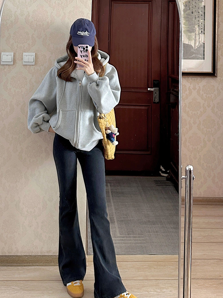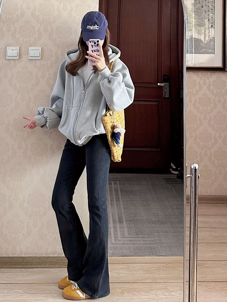 Gray Hooded Sweatshirt Women's Autumn 2025 New Arrival Fancy Loose Casual Laid-Back Style Jacket Long-Sleeved Tops