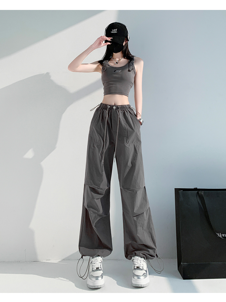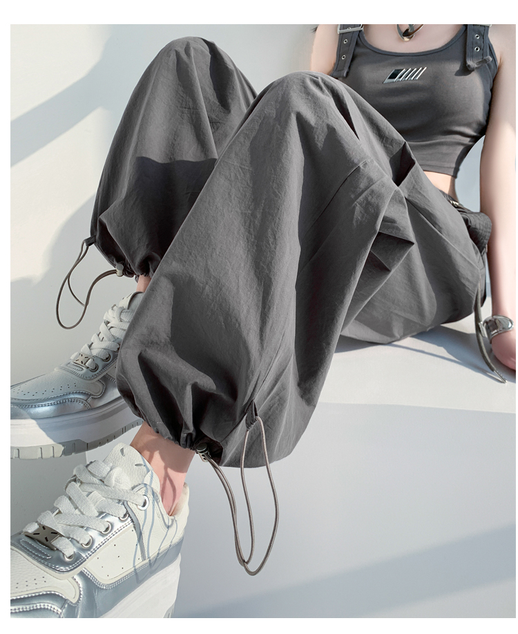 Gray Thin Loose Tappered Quick-Drying Sports Overalls