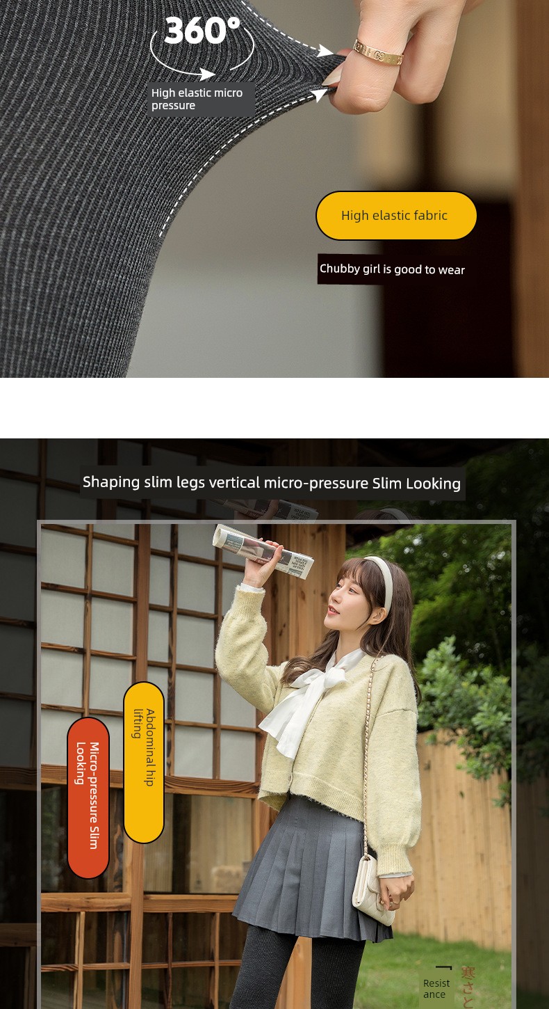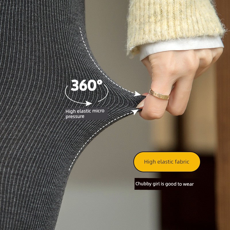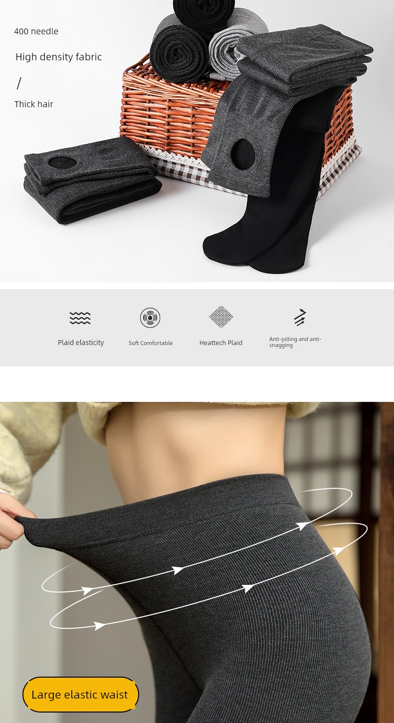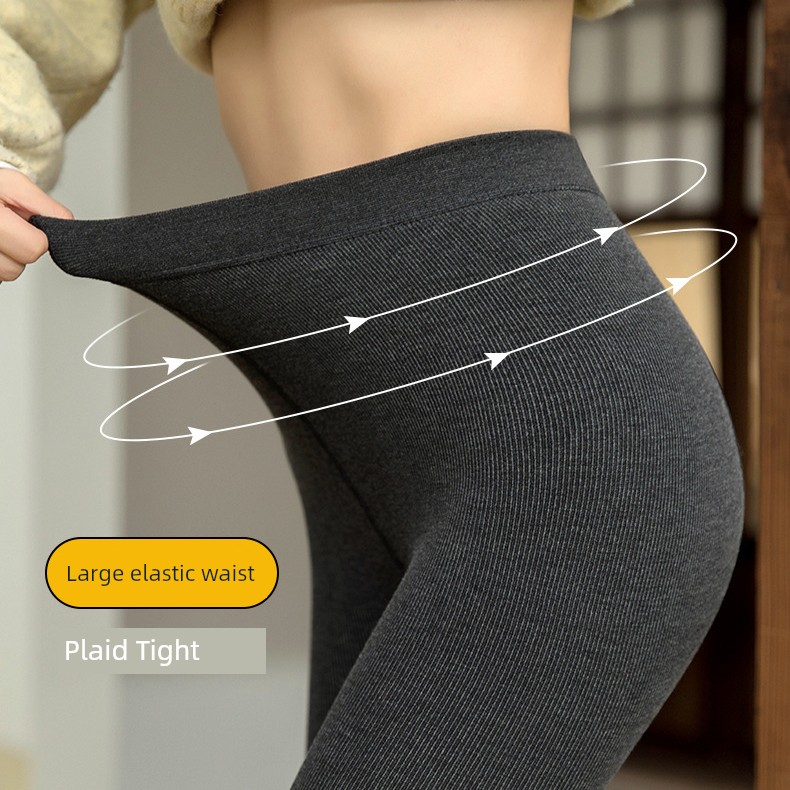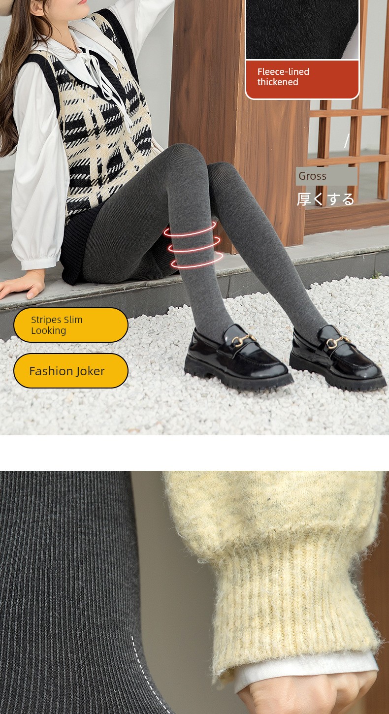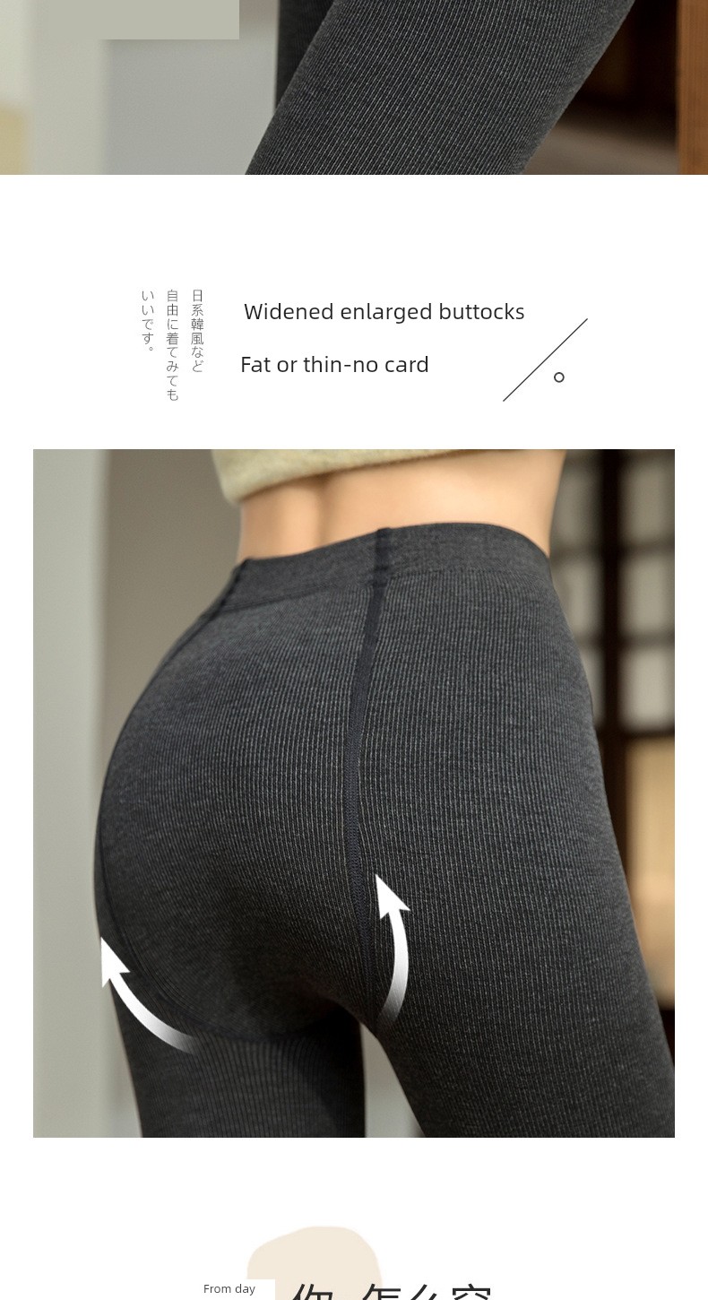 Gray Underwear Leggings Women's Outer Autumn and Winter Fleece Lined Padded Warm Keeping Long Johns High Waist Tight Wool Cotton Pantyhose