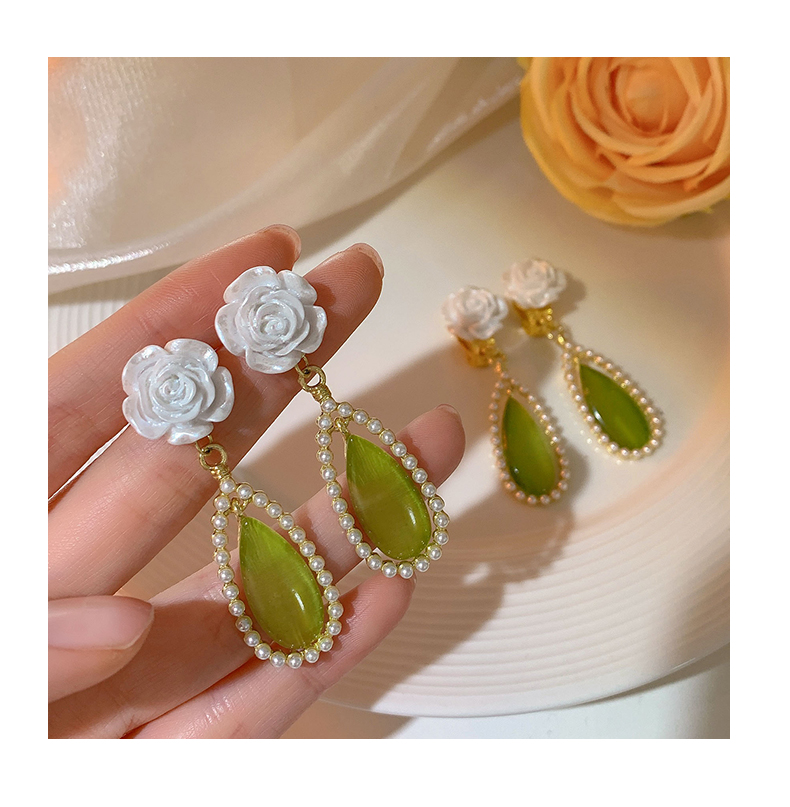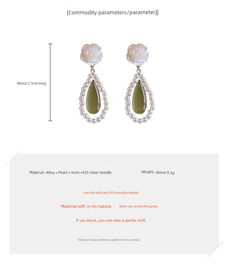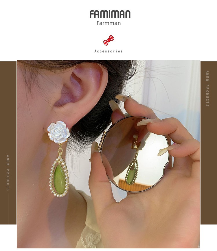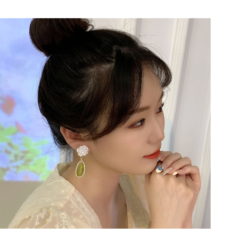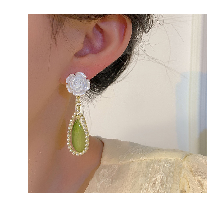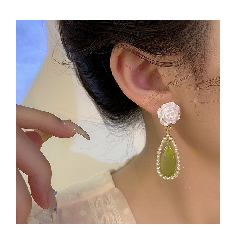Green Camellia Female 2023 New Arrival Western Style Niche Style Design Sense Earrings French Style Mori Elegant and Simple Earrings