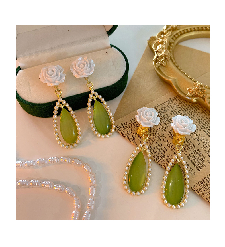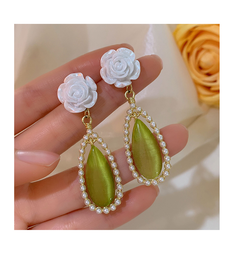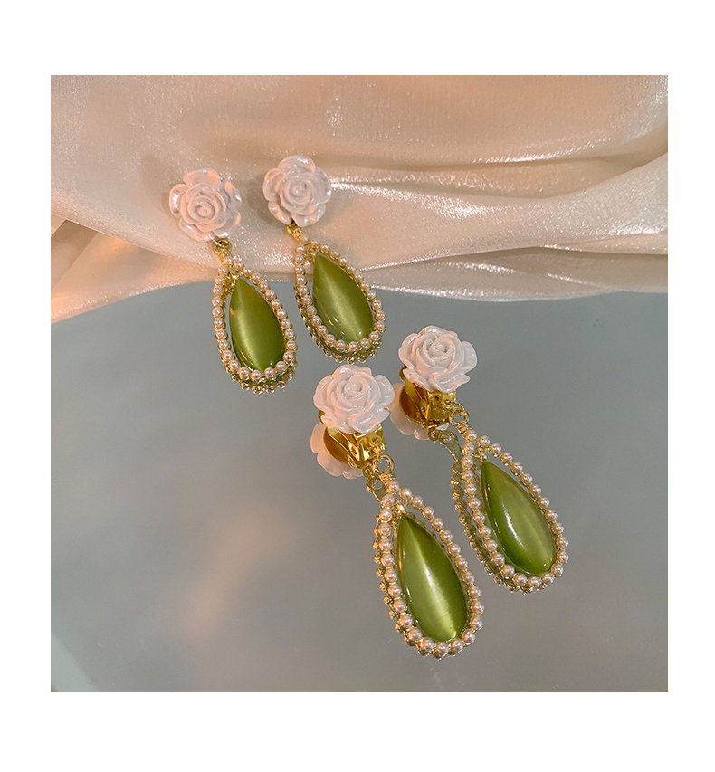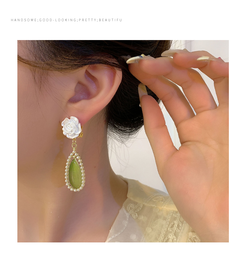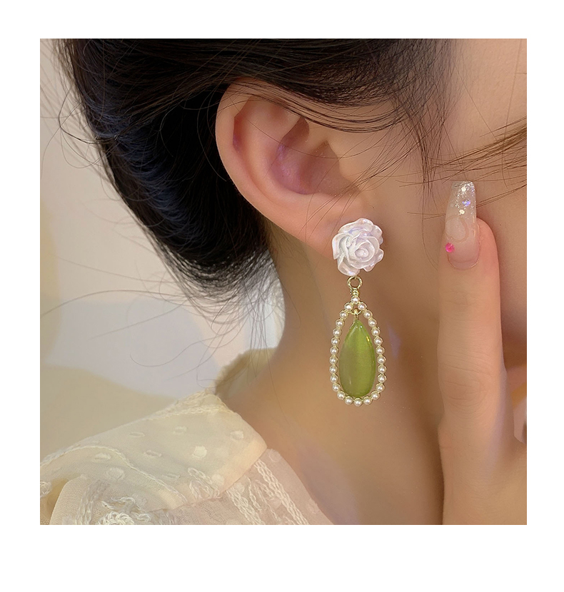 Green Camellia Female 2023 New Arrival Western Style Niche Style Design Sense Earrings French Style Mori Elegant and Simple Earrings