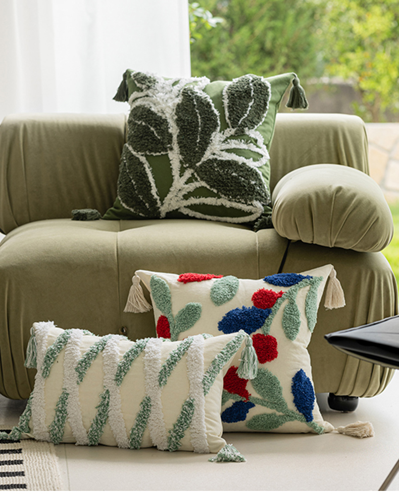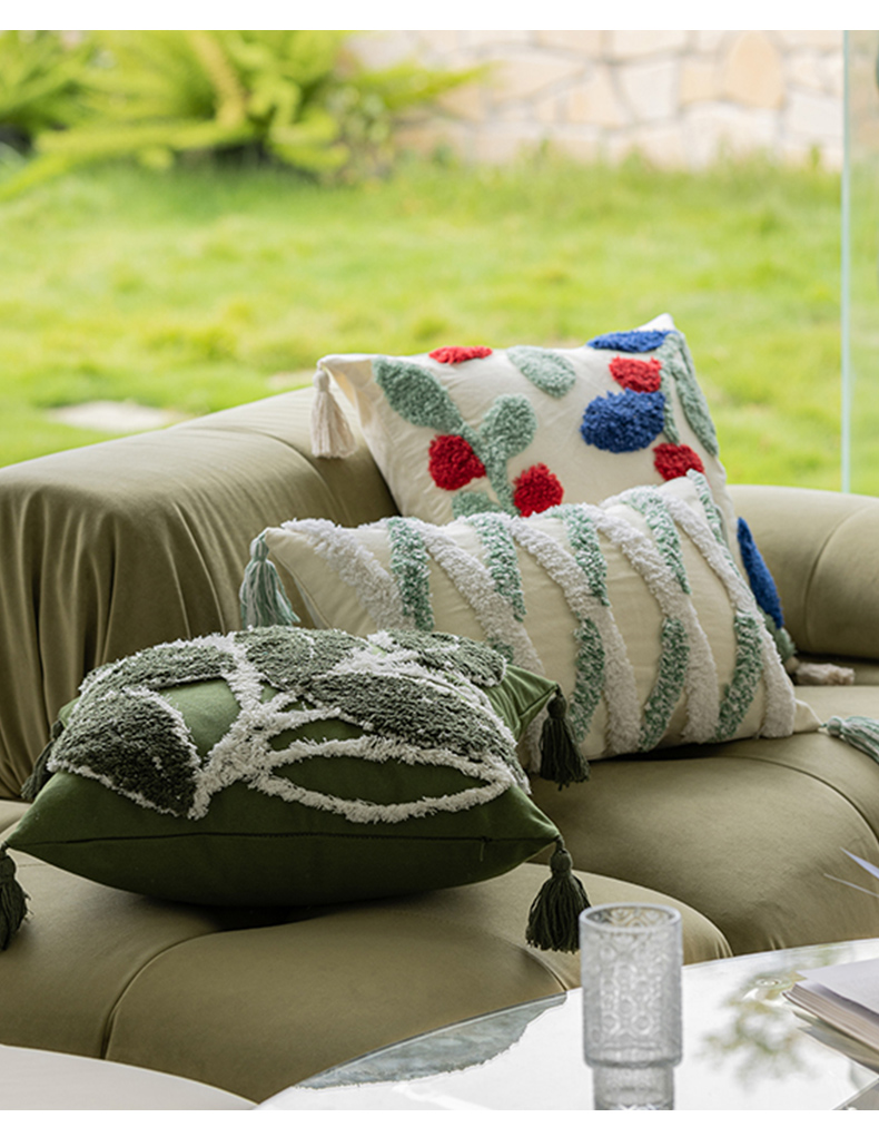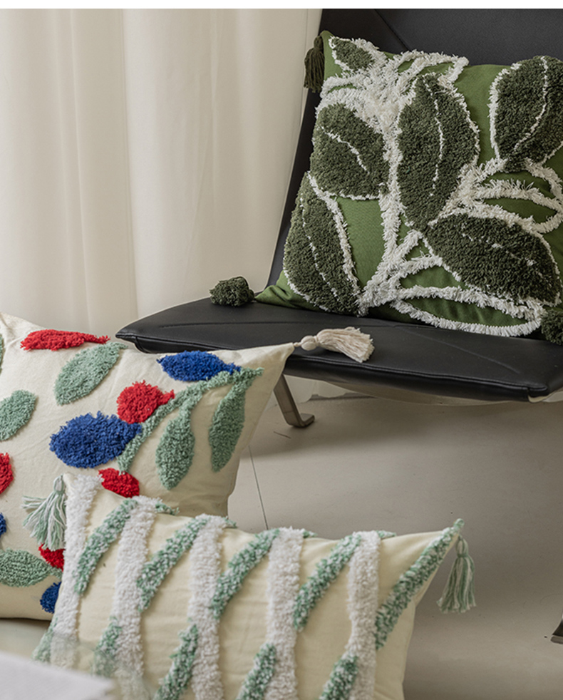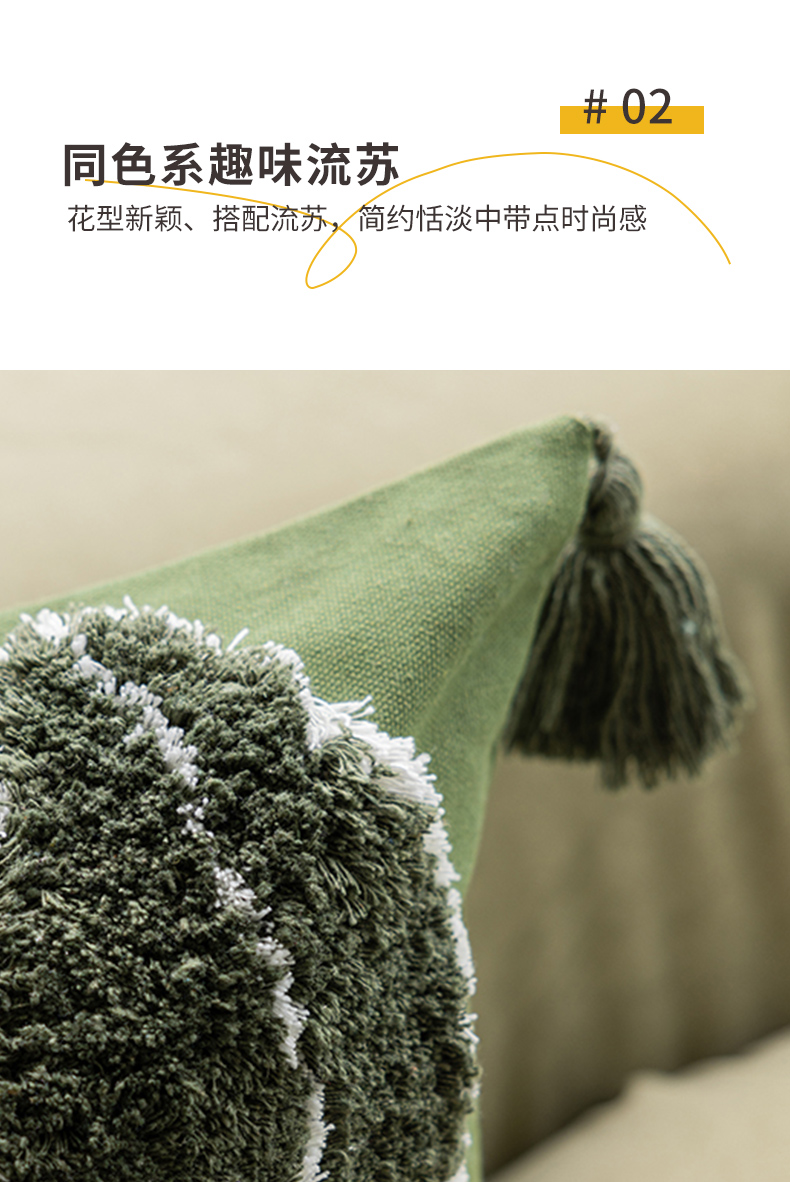 Green Tufted Tassel Bohemia Wind Cushion Cushion Sofa Living Room Plush Pillowcase
