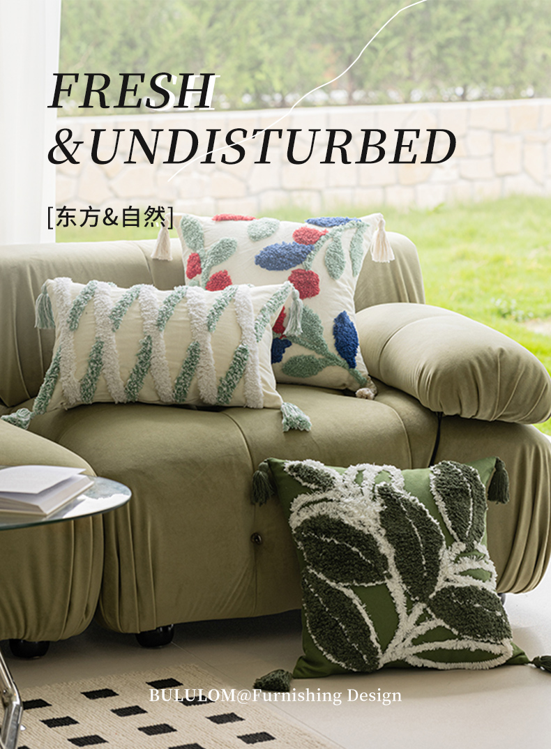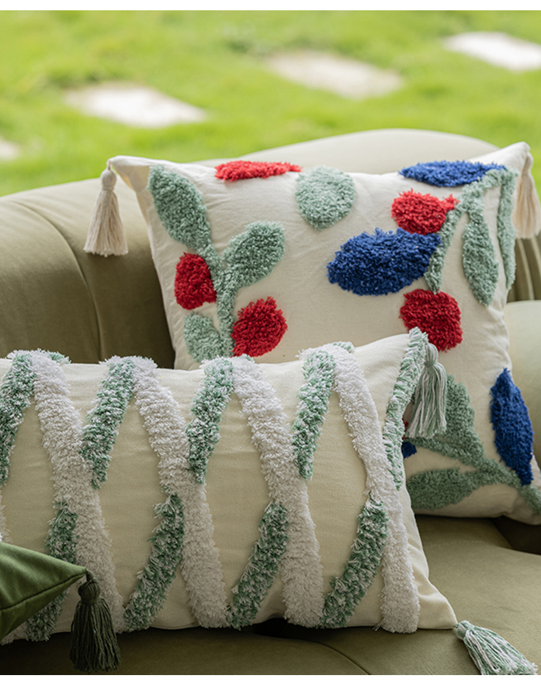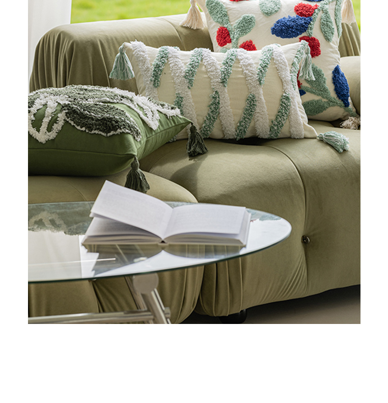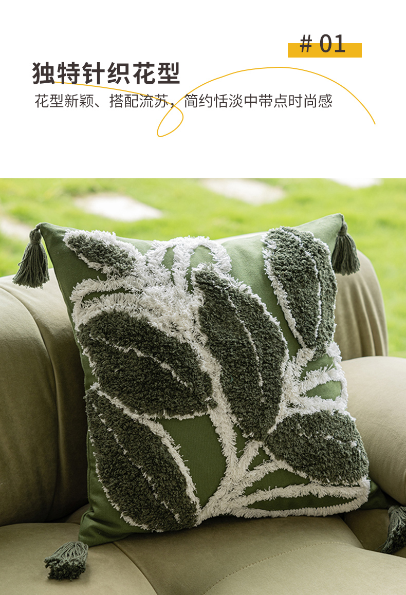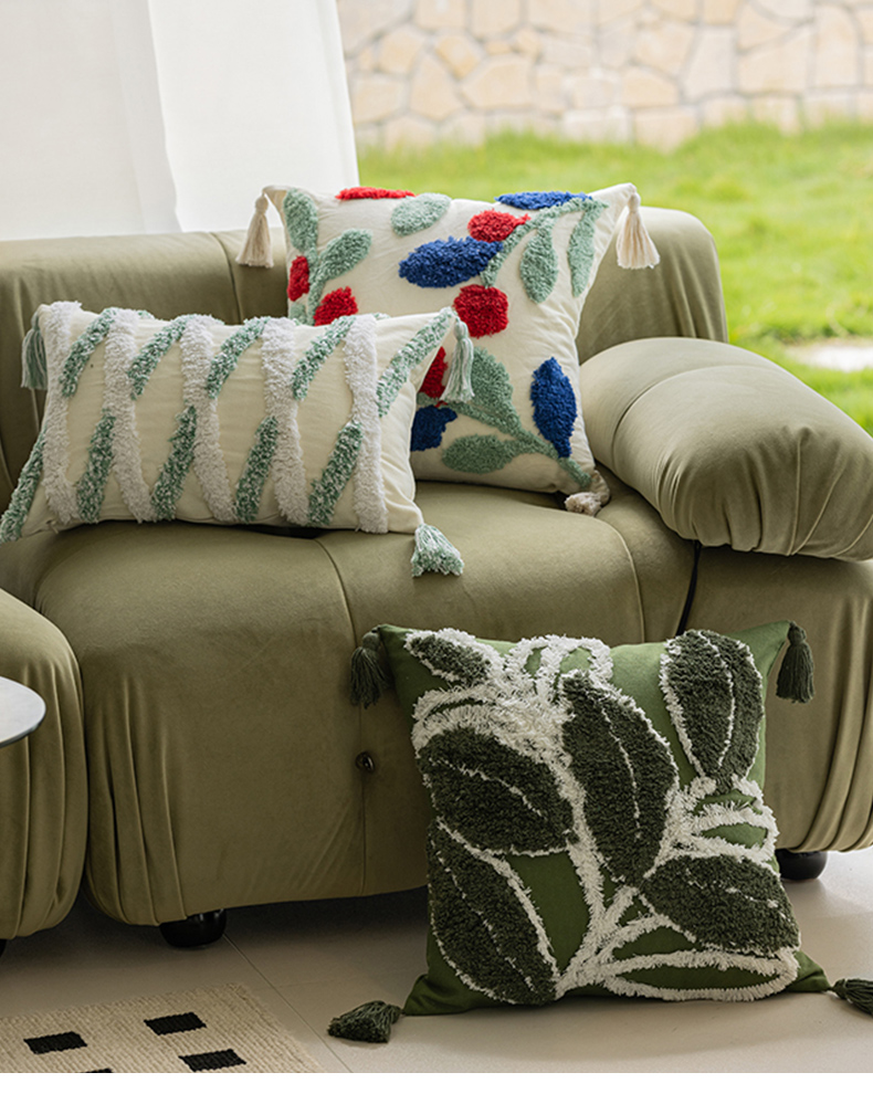 Green Tufted Tassel Bohemia Wind Cushion Cushion Sofa Living Room Plush Pillowcase