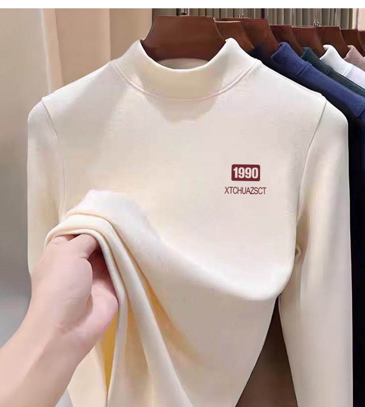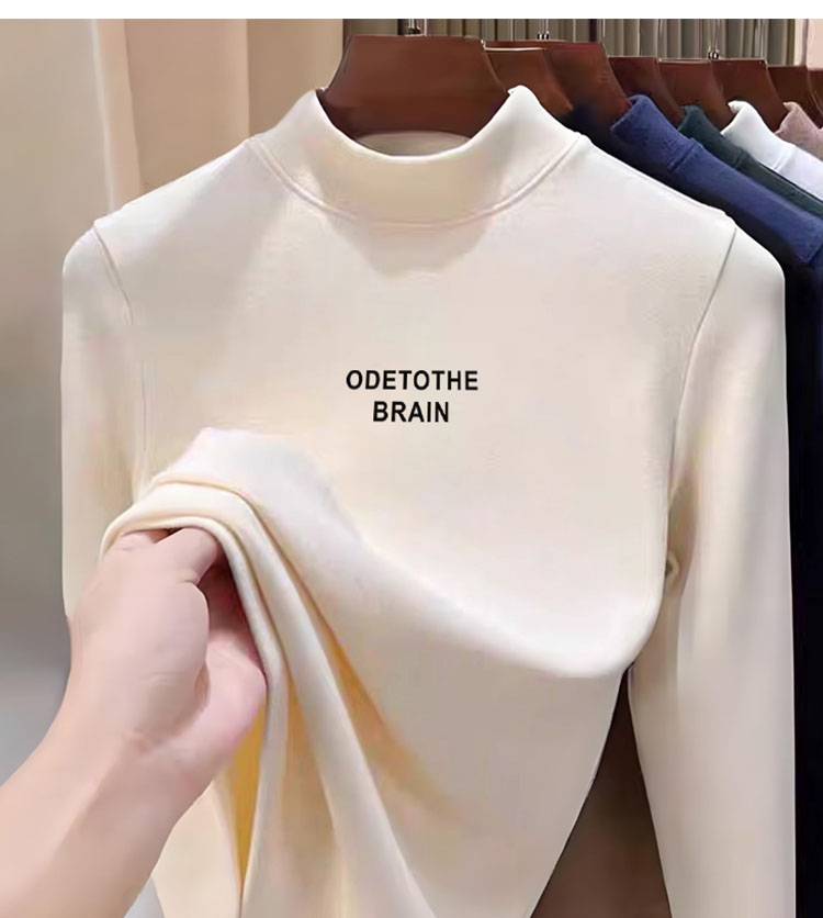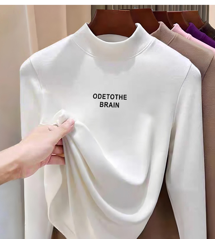 Half Turtleneck Bottoming Shirt Women's Autumn and Winter Casual All-Match White Double-Sided Dralon Long Sleeves T-shirt Slim Fit Slimming Top