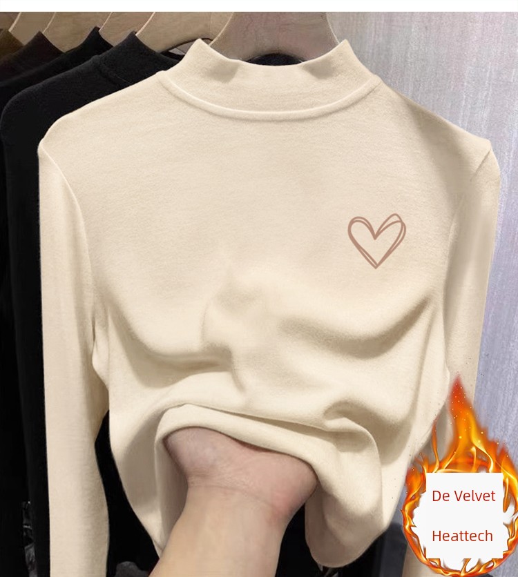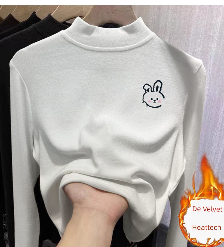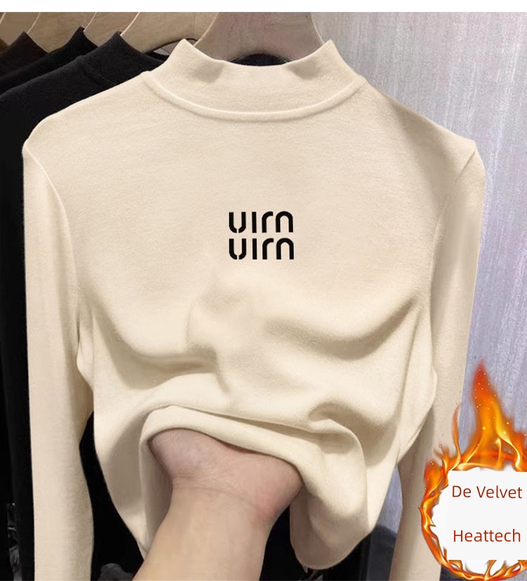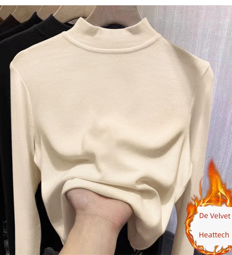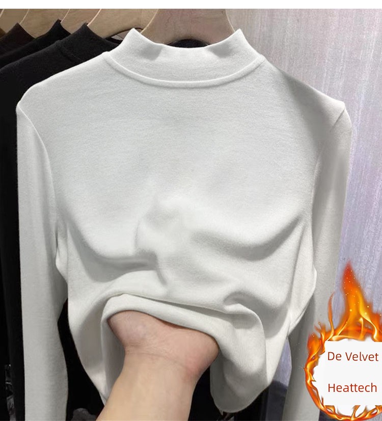 Half Turtleneck Dralon White Long Sleeve T-shirt Female Winter Thickened Heattech Tops Inner Bottoming Shirt 2025 New Arrival