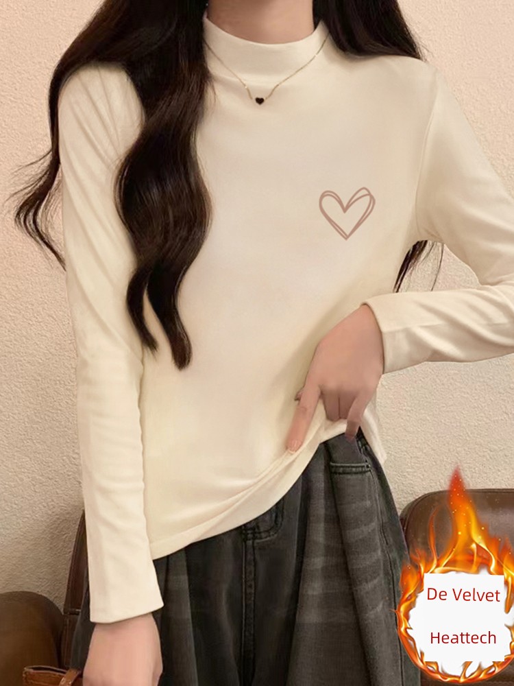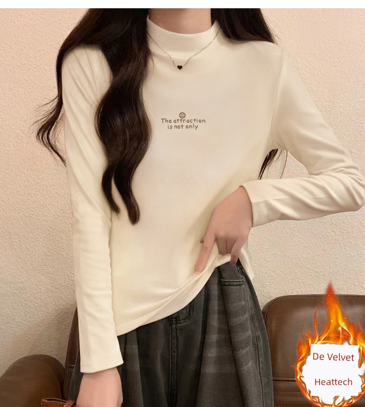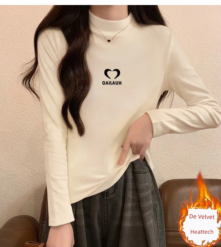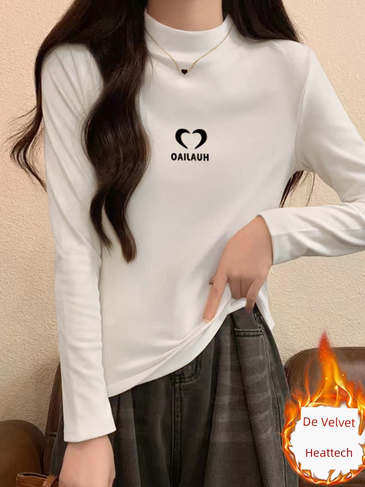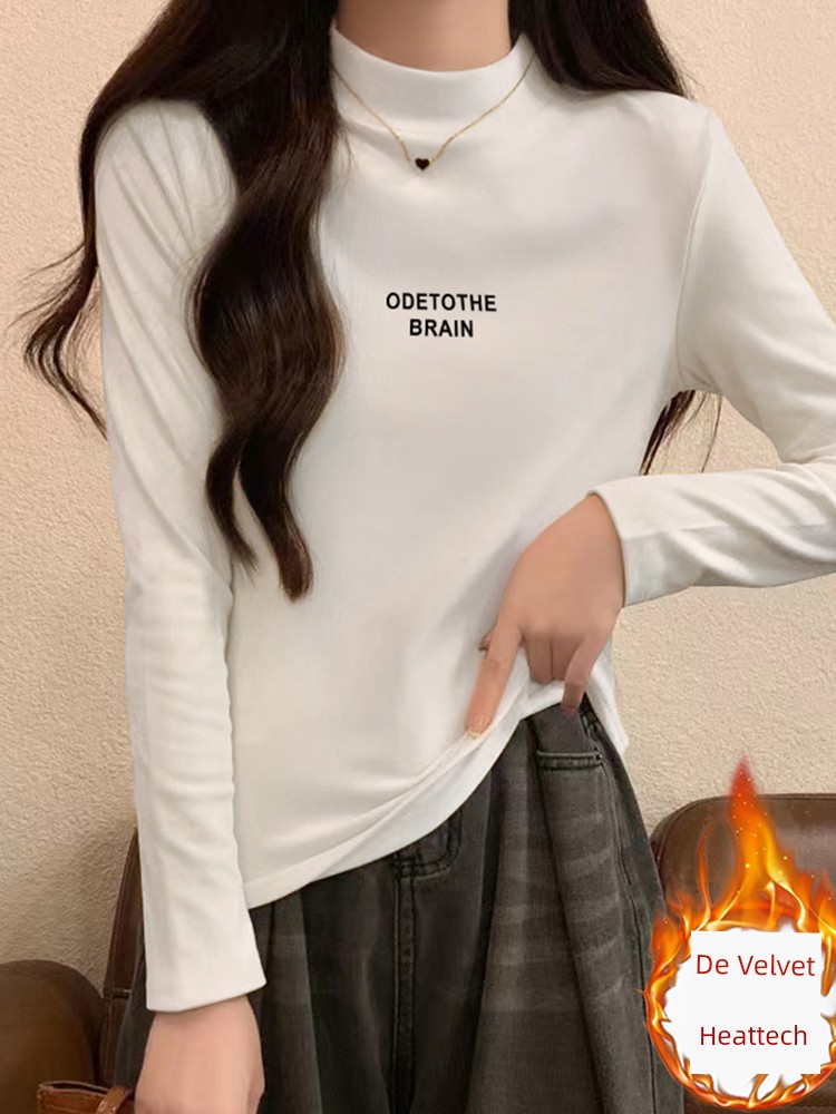 Half Turtleneck Silm Slim Looking Dralon Bottoming Shirt Women's Autumn and Winter Fleece-lined Heattech Western Style Inner Wear Middle-Collar Long Sleeve T-Shirt