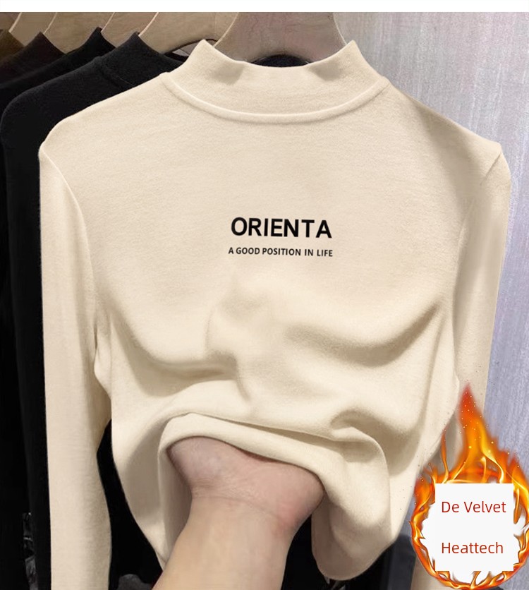Half Turtleneck Silm Slim Looking Dralon Bottoming Shirt Women's Autumn and Winter Thickened Heattech Western Style Inner Wear Middle-Collar Long Sleeve T-Shirt