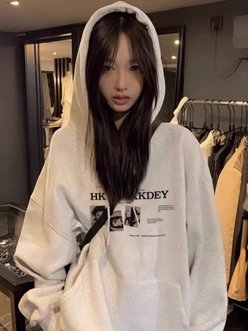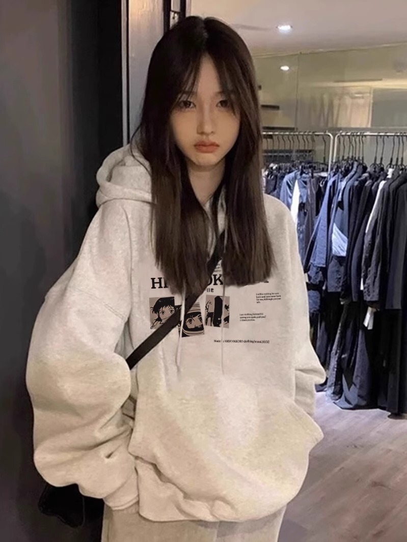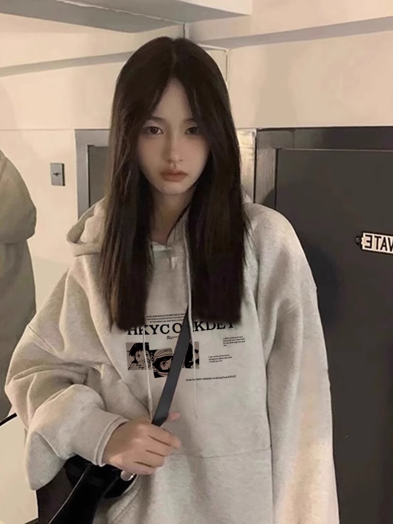 Heavy Weight Pure Cotton Silver Fox Velvet American Hiphop Hooded Sweatshirt Female Spring & Fall Velvet Padded Loose Niche Style Lazy Coat