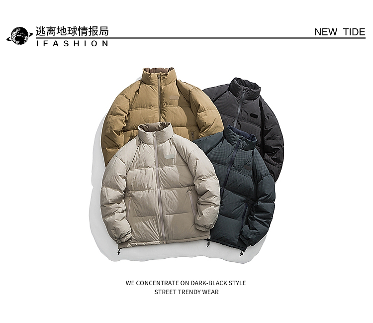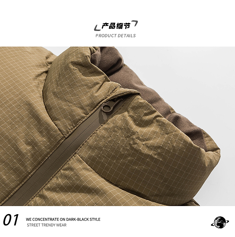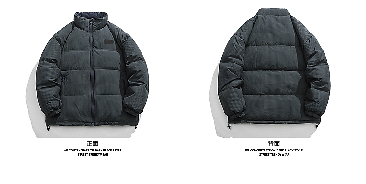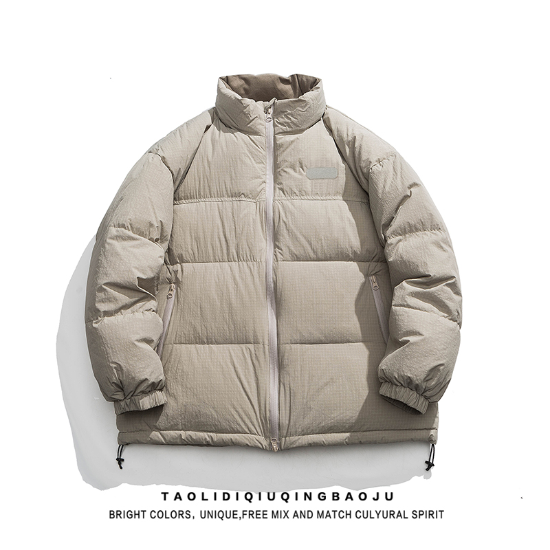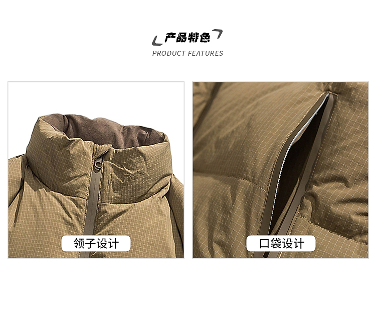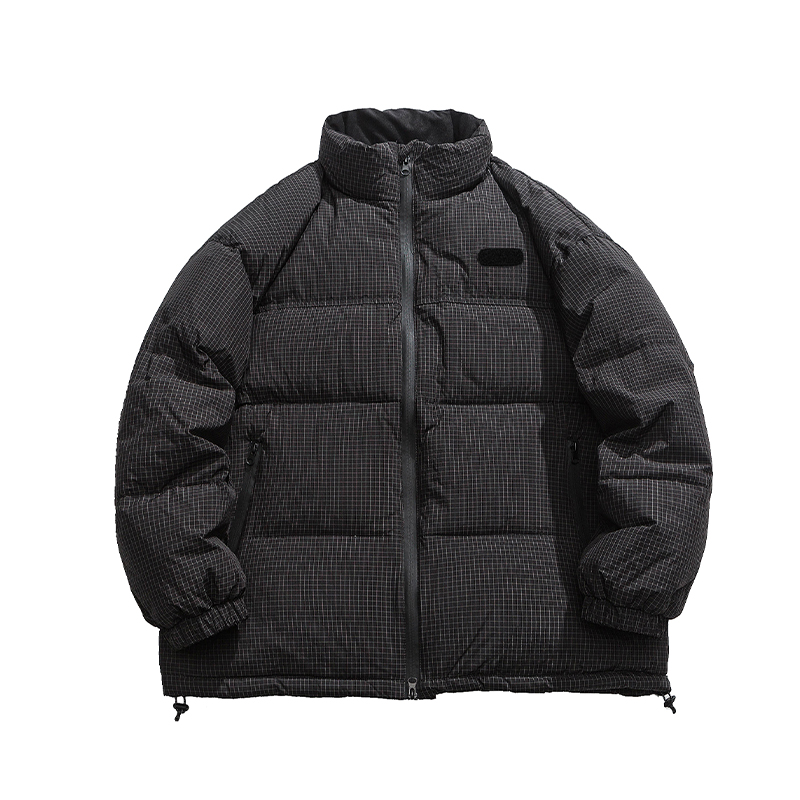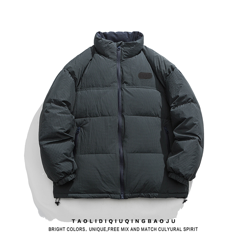 Thickened Plaid Stand Collar Down Coat for Couples, Autumn/Winter New Loose Versatile White Duck Down Jacket