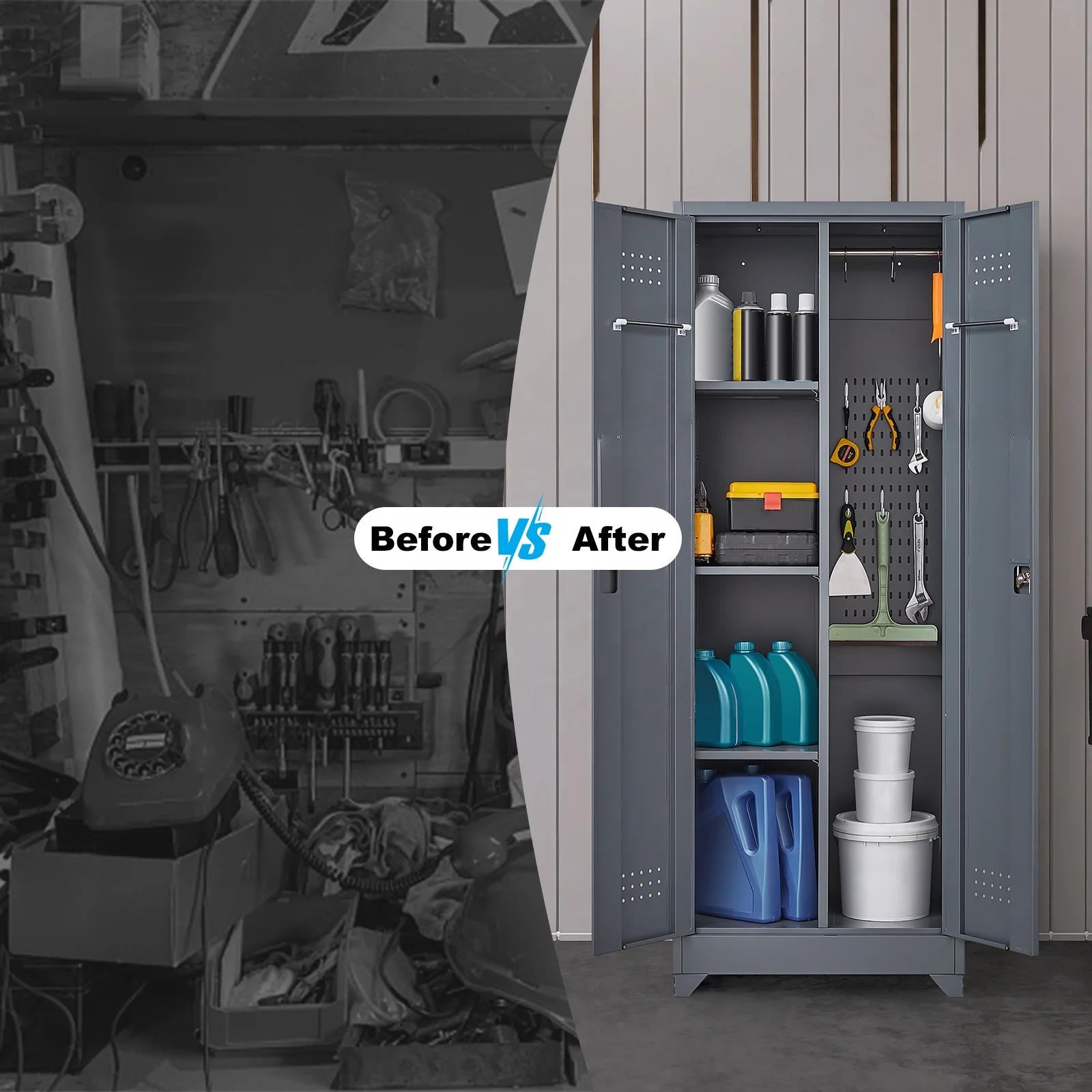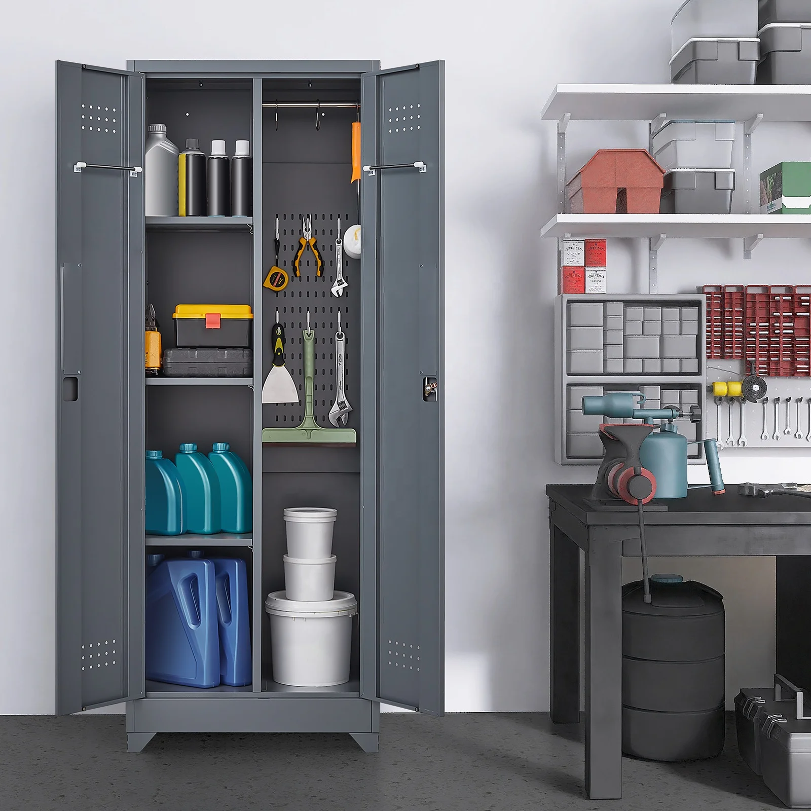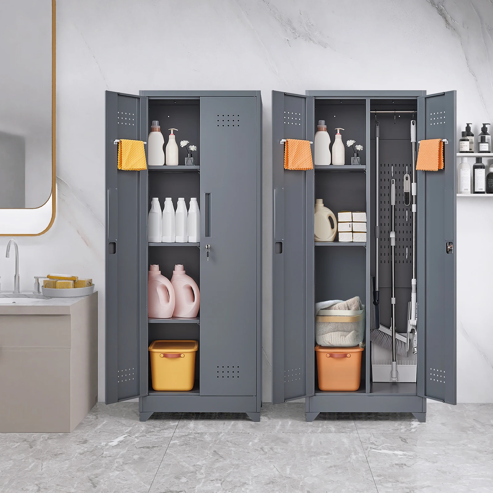 High Quality Metal Kitchen Garage Filling Cabinet Cleaning Tool Broom Cabinet With Wheels Lockable Metal Storage Cabinet
