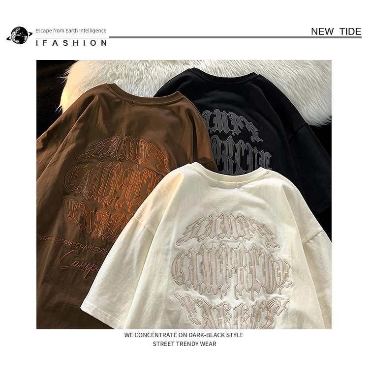 Hip-Hop Fashionable Brand Oversize Casual Half-Sleeve Embroidery