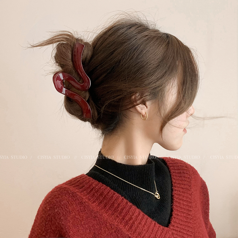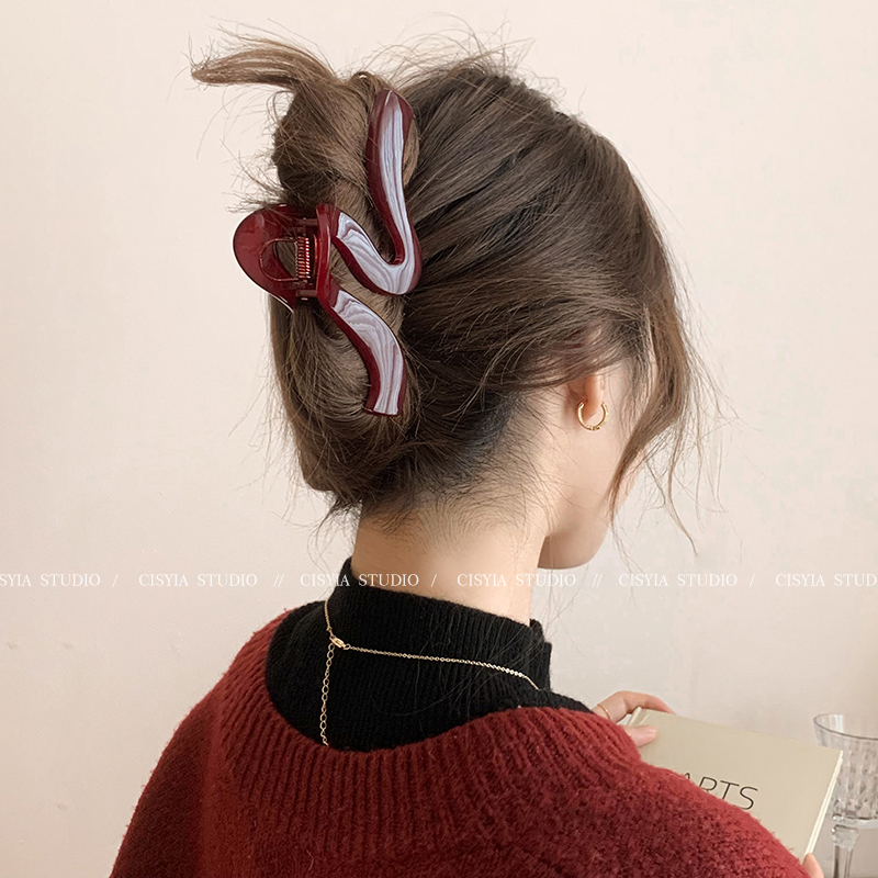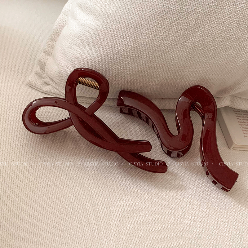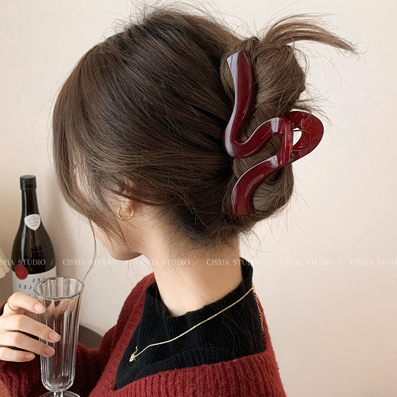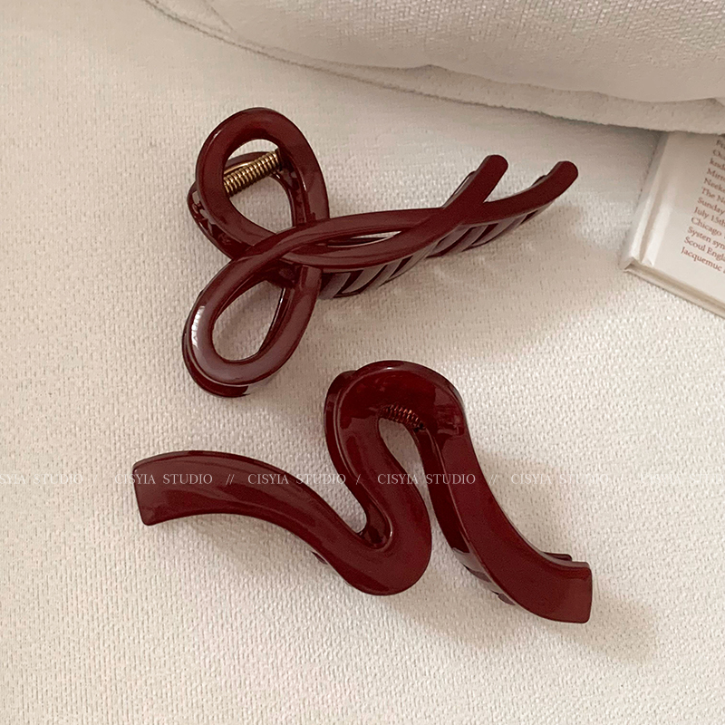 Hong Kong Style Retro Wine Red Wave Grip Women's Large Hair Volume Shark Clip Spring Clip Back Head Barrettes