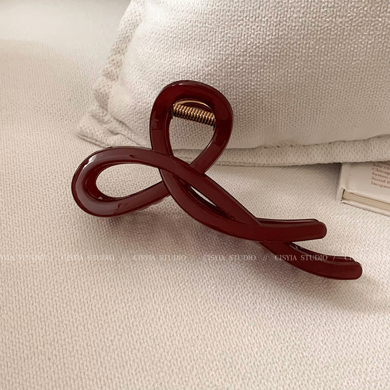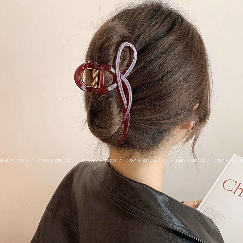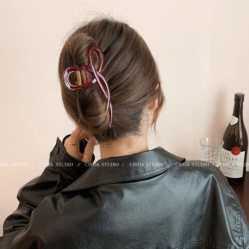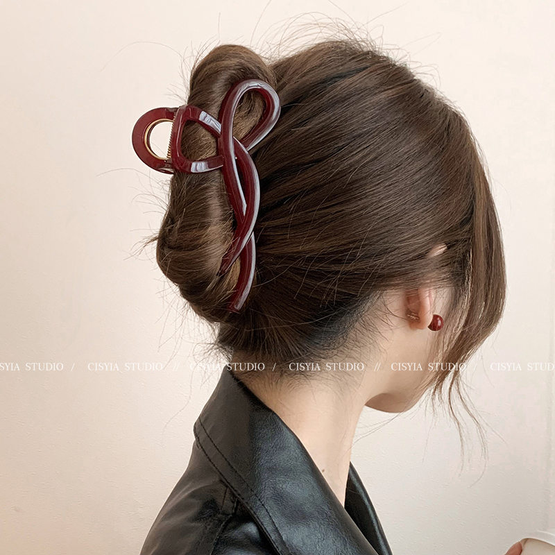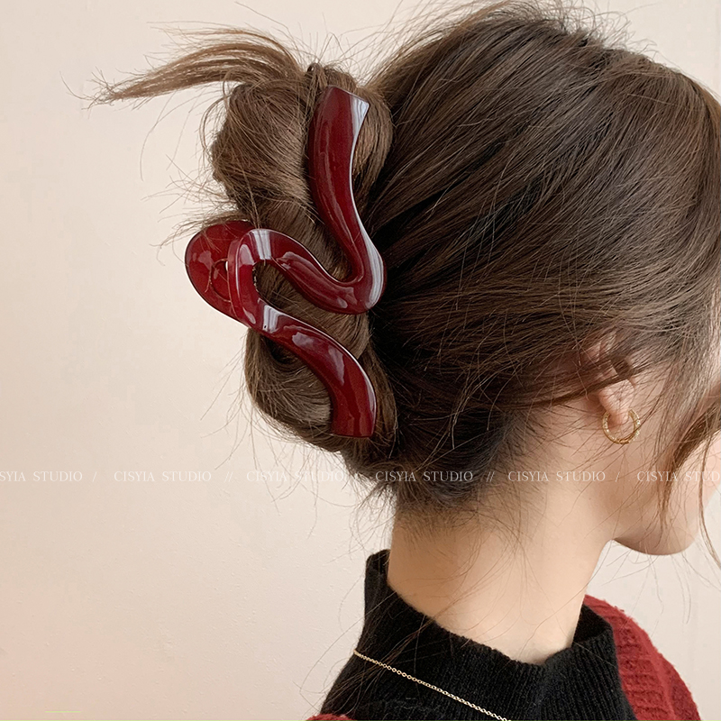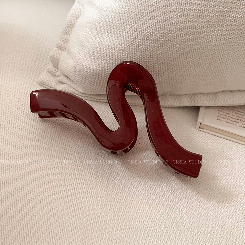 Hong Kong Style Retro Wine Red Wave Grip Women's Large Hair Volume Shark Clip Spring Clip Back Head Barrettes