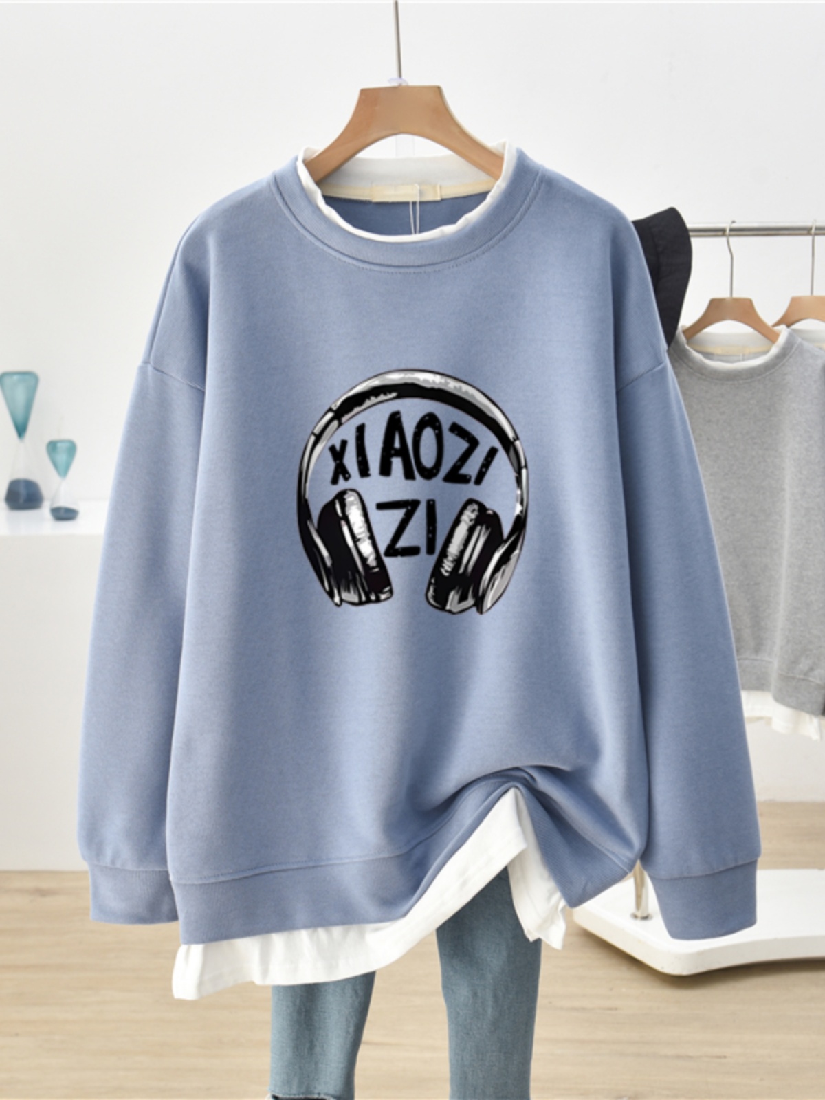 Hooded Gray Sweater Women 2025 New Arrival Best Selling Plus Size Fall and Winter Fleece-lined Oversize American Fake Two-Pieces Coats
