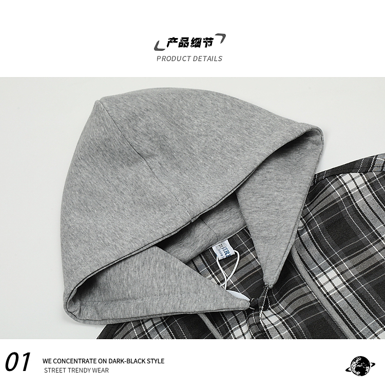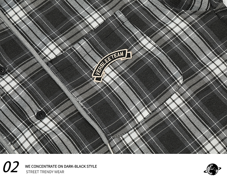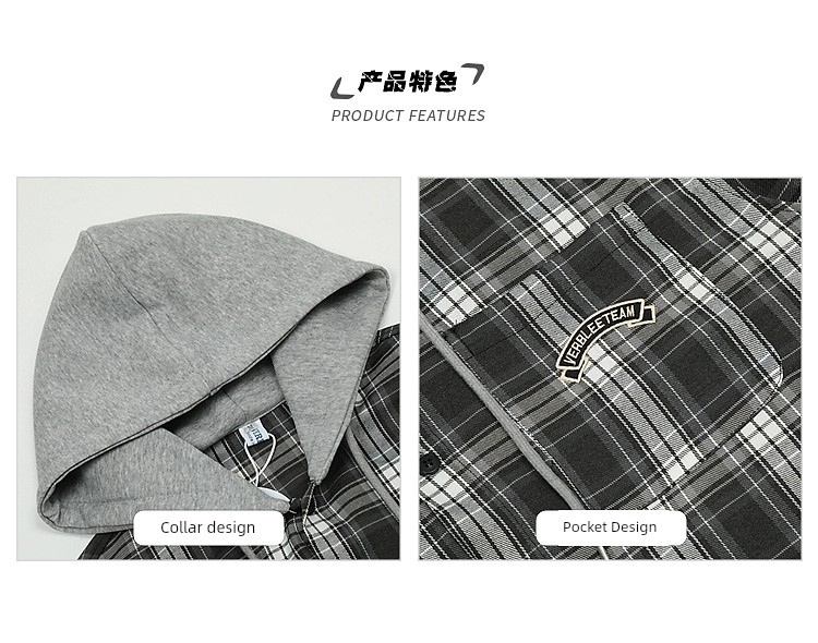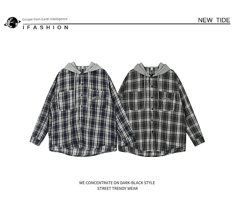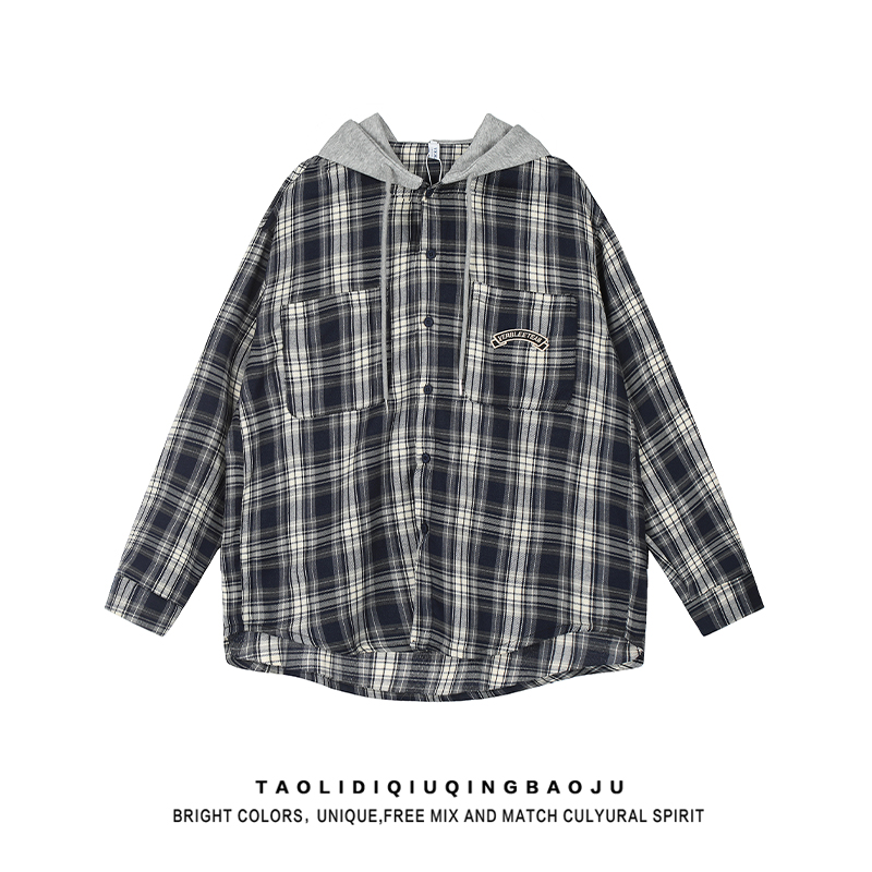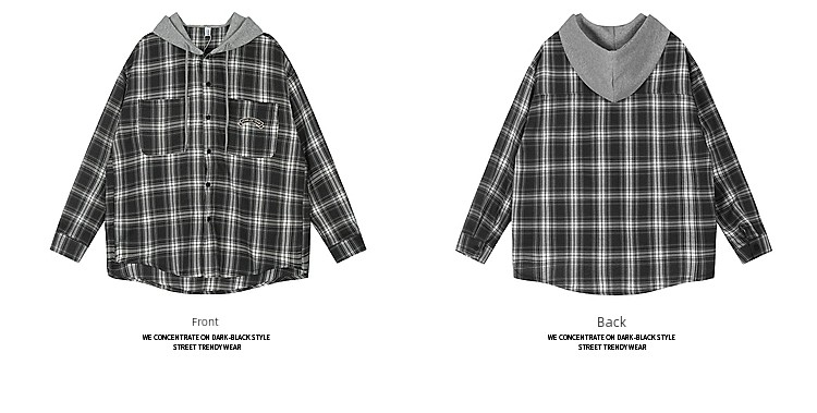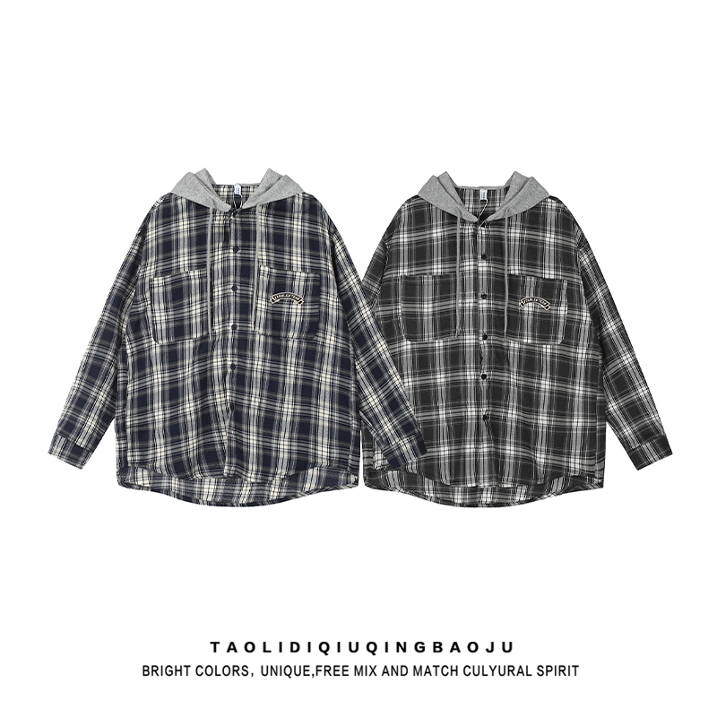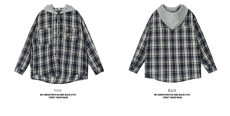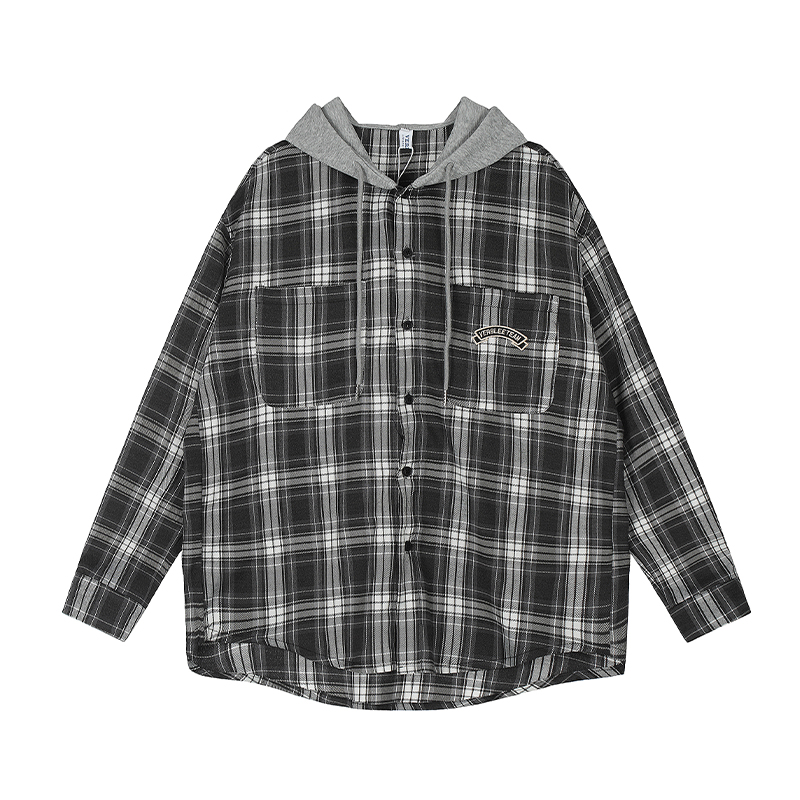 Hooded Loose BF Casual Easiest for Match Couple Gingham Shirt