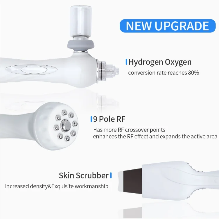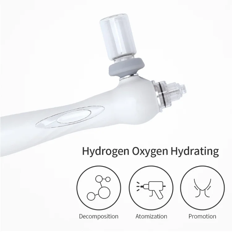 3.H2O2 spray: producing oxyhydrogen combined with essence, quickly penetrating dermis through high pressure injection to provide nutrients thus reduce wrinkles, whiten, brighten and rejuvenate skin.