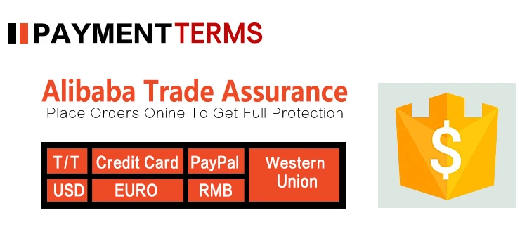 A5.We accept T/T, West Union, Alibaba Trade Assurance and others.