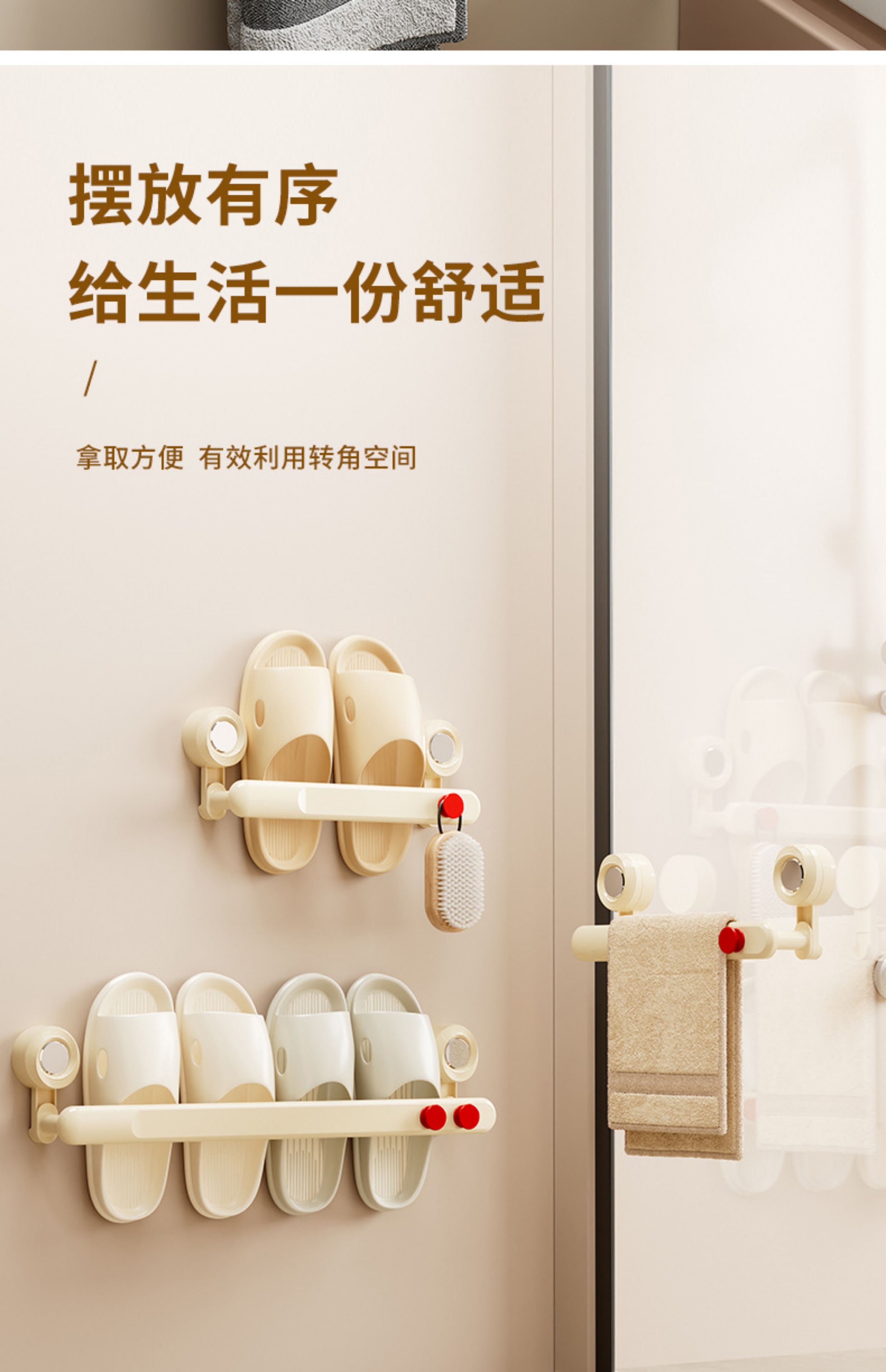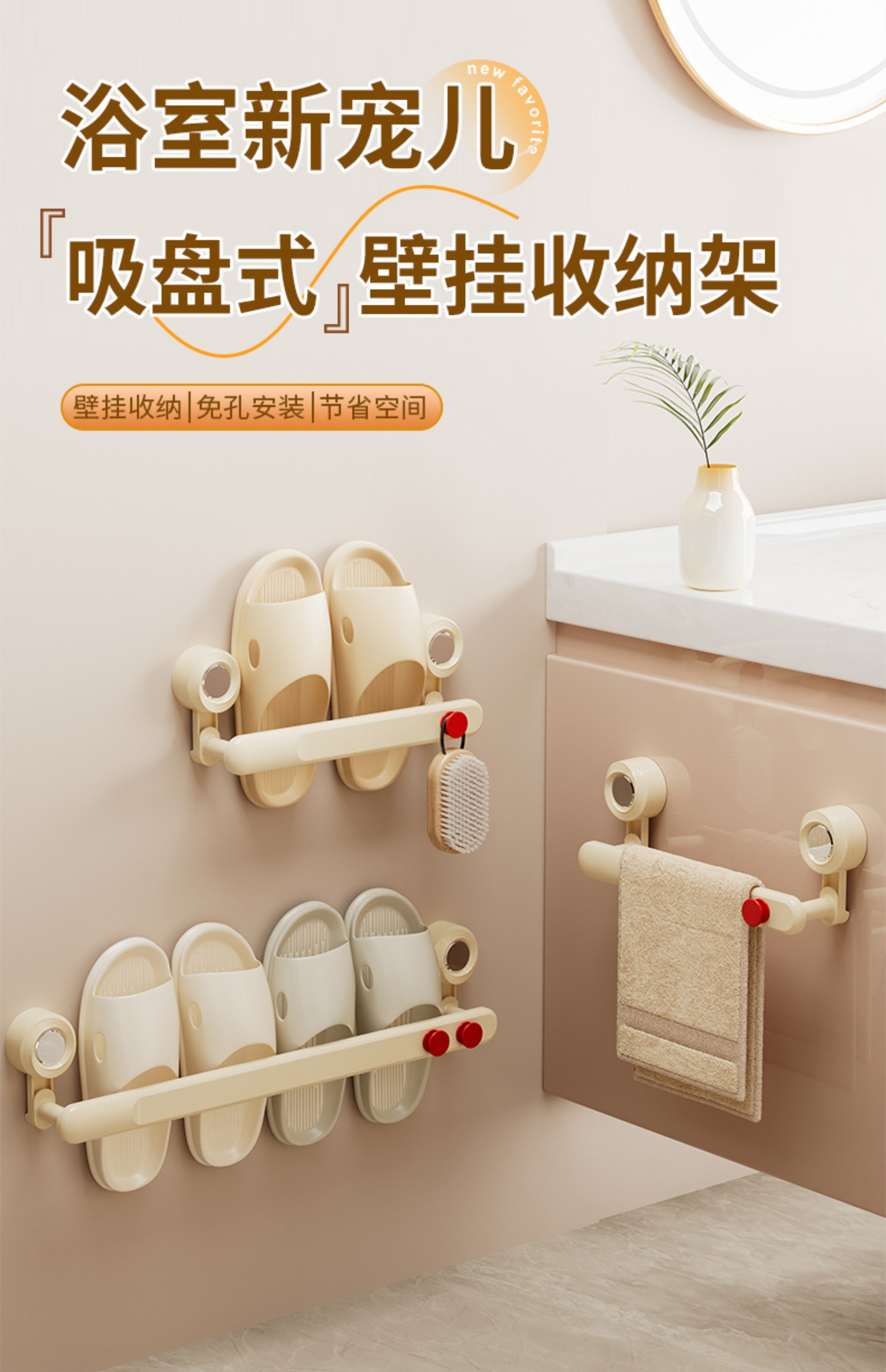 Household Portable Cream Sucker Slipper Rack Household Draining Storage Rack Bathroom Punch-Free Multifunctional Storage Rack