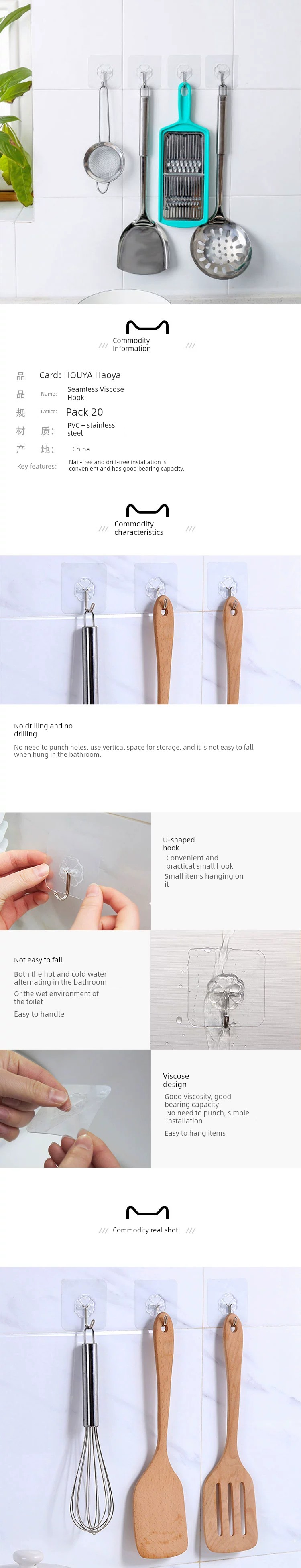 Houya 20 Seamless Viscose Wall Hook