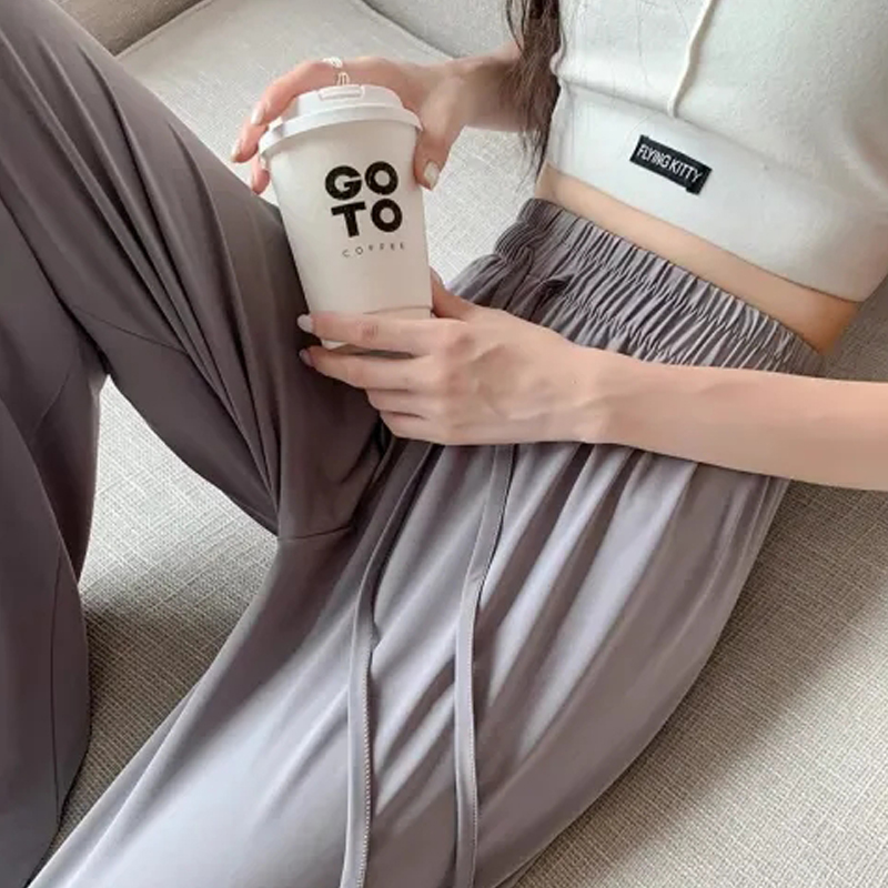 Ice Silk Leggings Women's Summer Thin Draping Effect Loose Pants Chubby Girl Plus Size High-End Thin Exercise All-Matching Casual Pants Fashion