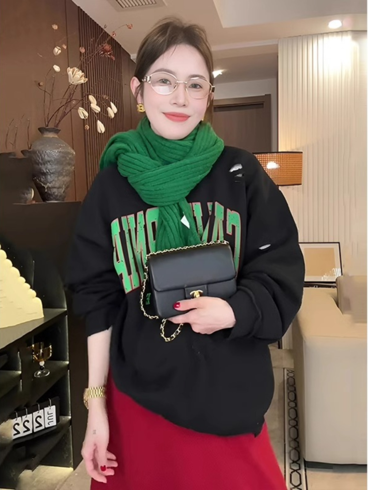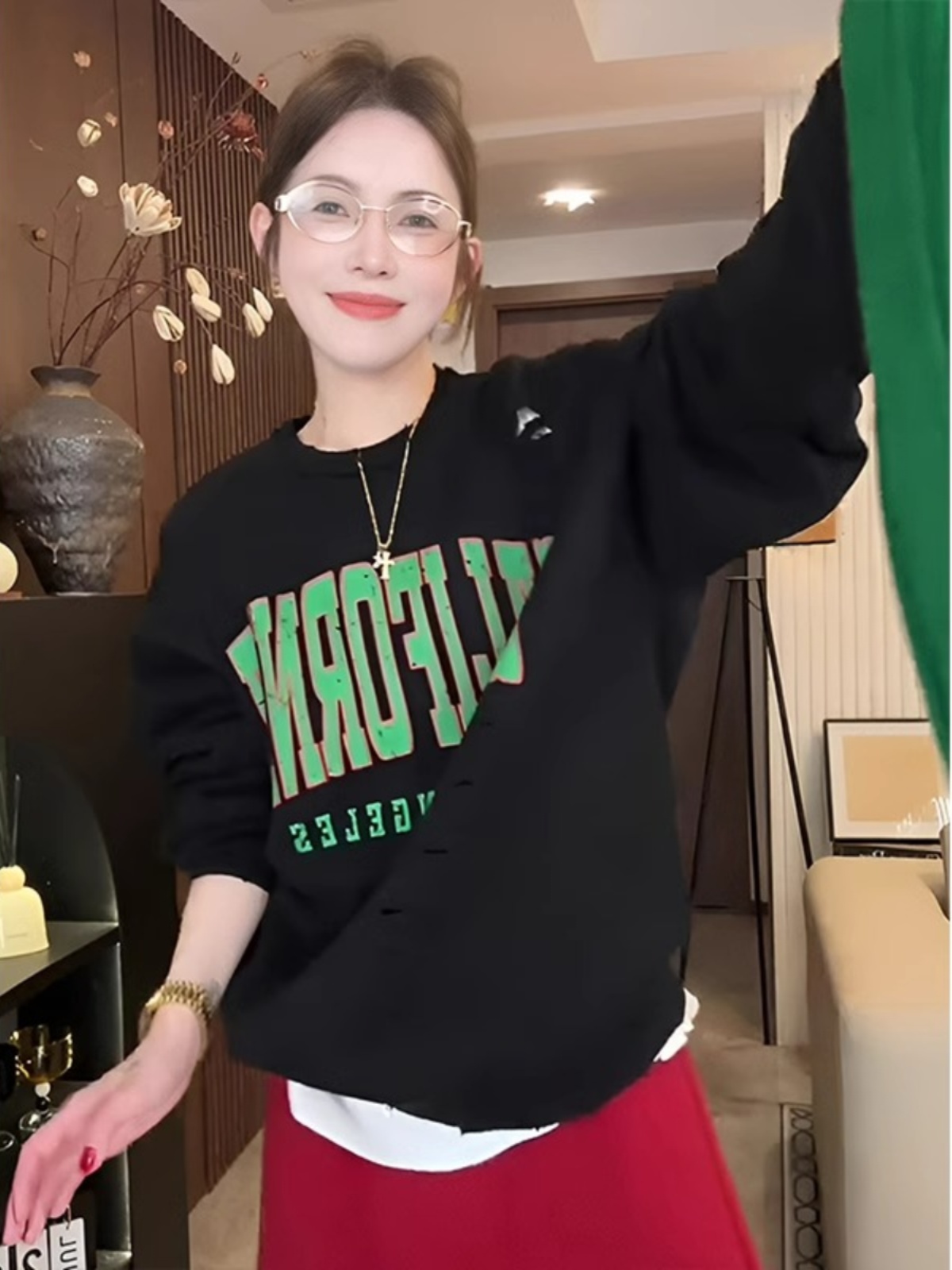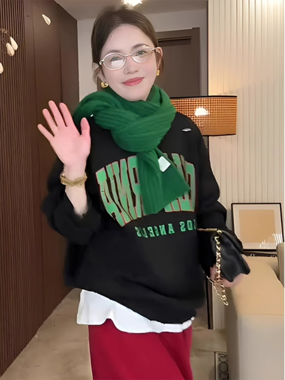 Idle Style Casual round Neck Fleece-Lined Sweater Female Spring & Fall 2025 New Arrival Best Selling Loose Thick Long Sleeve Top Coat