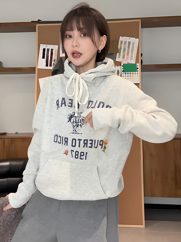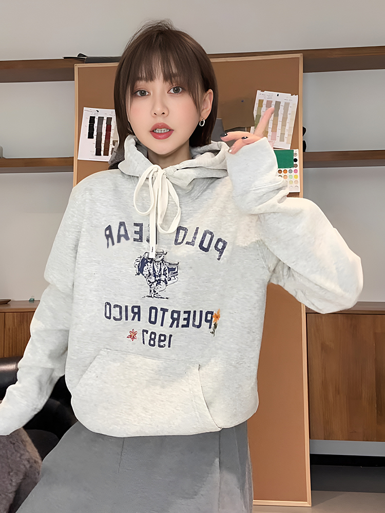 Casual Style Letter Print Fleece-lined Hoodie for Women - 2025 Spring & Autumn New Arrival, Loose Inner Wear Long Sleeve Top