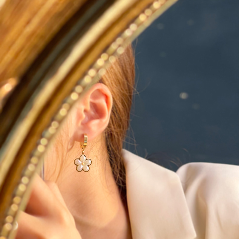 Imitation Pearl Flower Ear Buckle - Anti-drop, Retro Disco Style, Niche Design, High-End Minimalist, French All-Match Earrings
