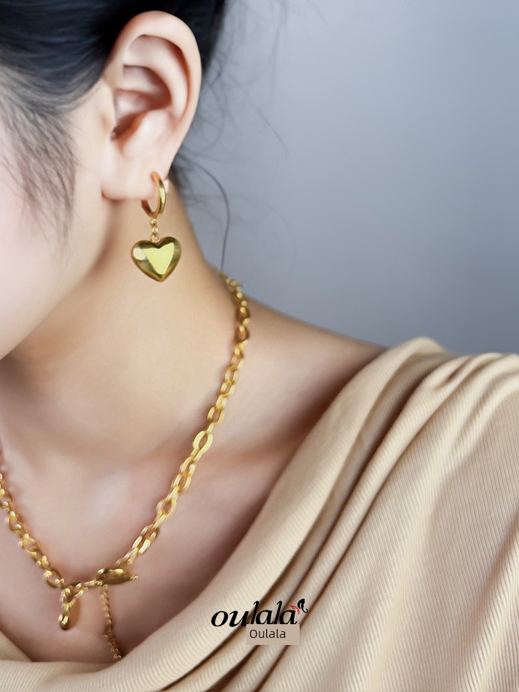 INS Fashion Internet Influencer Earrings Female Peach Heart Eardrops Titanium Steel Heart-Shaped Earrings Elegant Personalized Minority Imitation Ear Clip