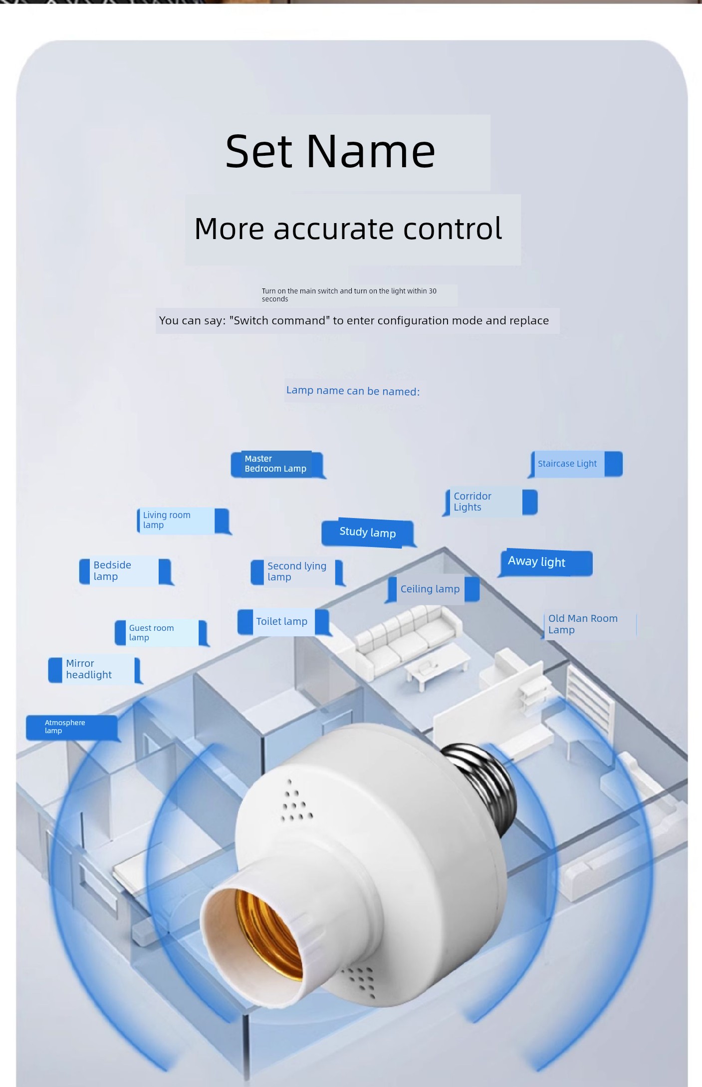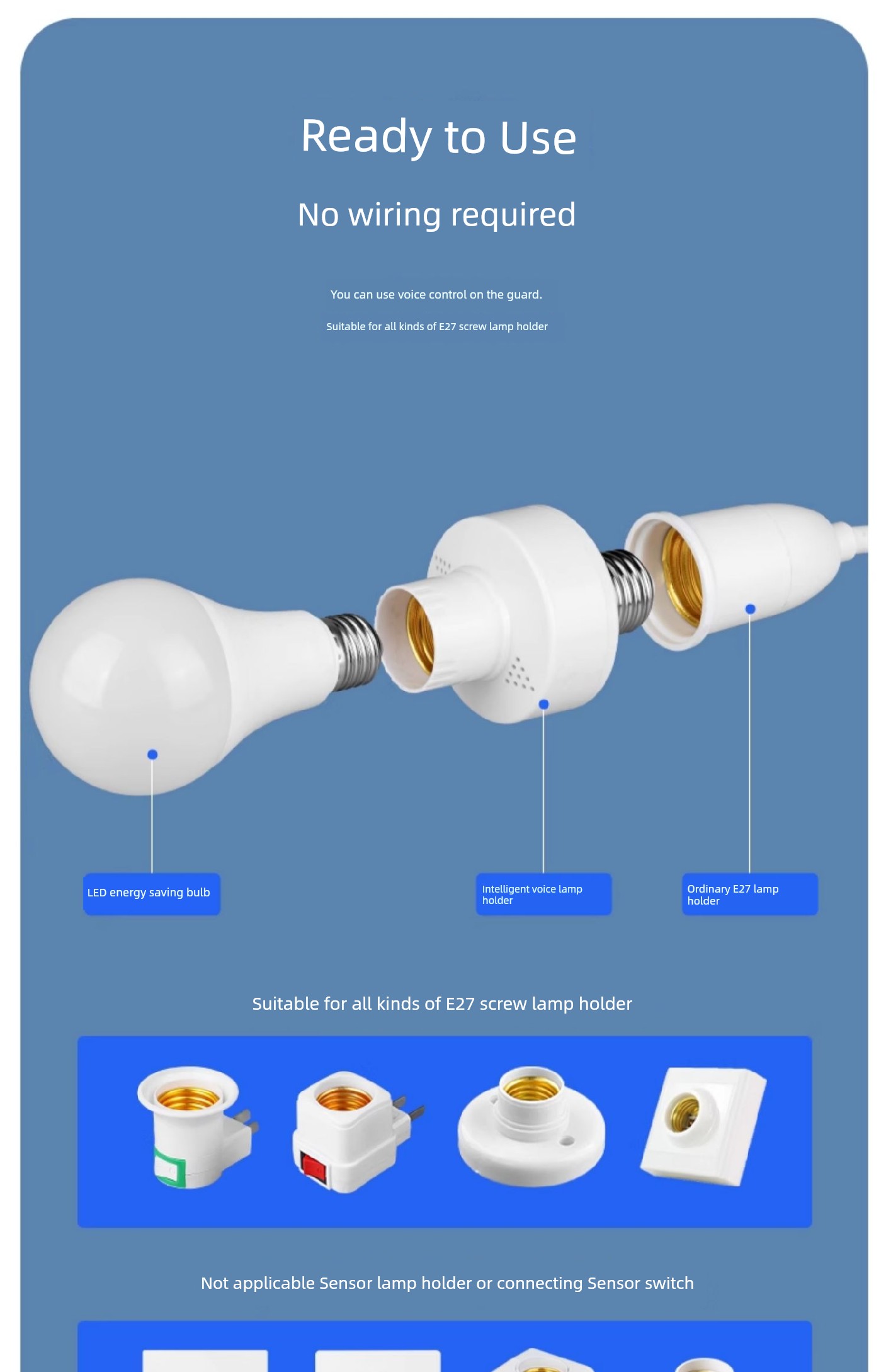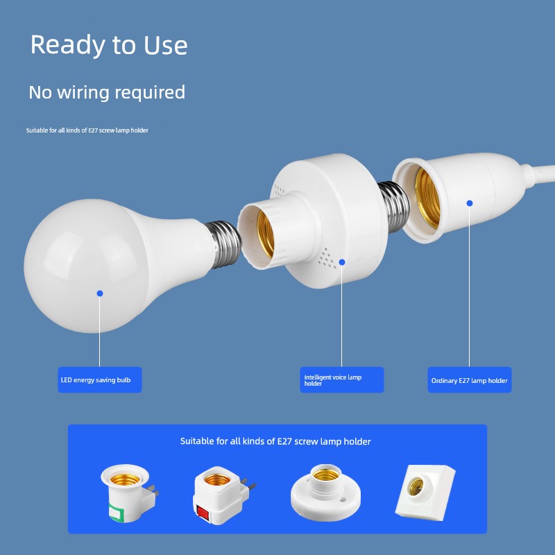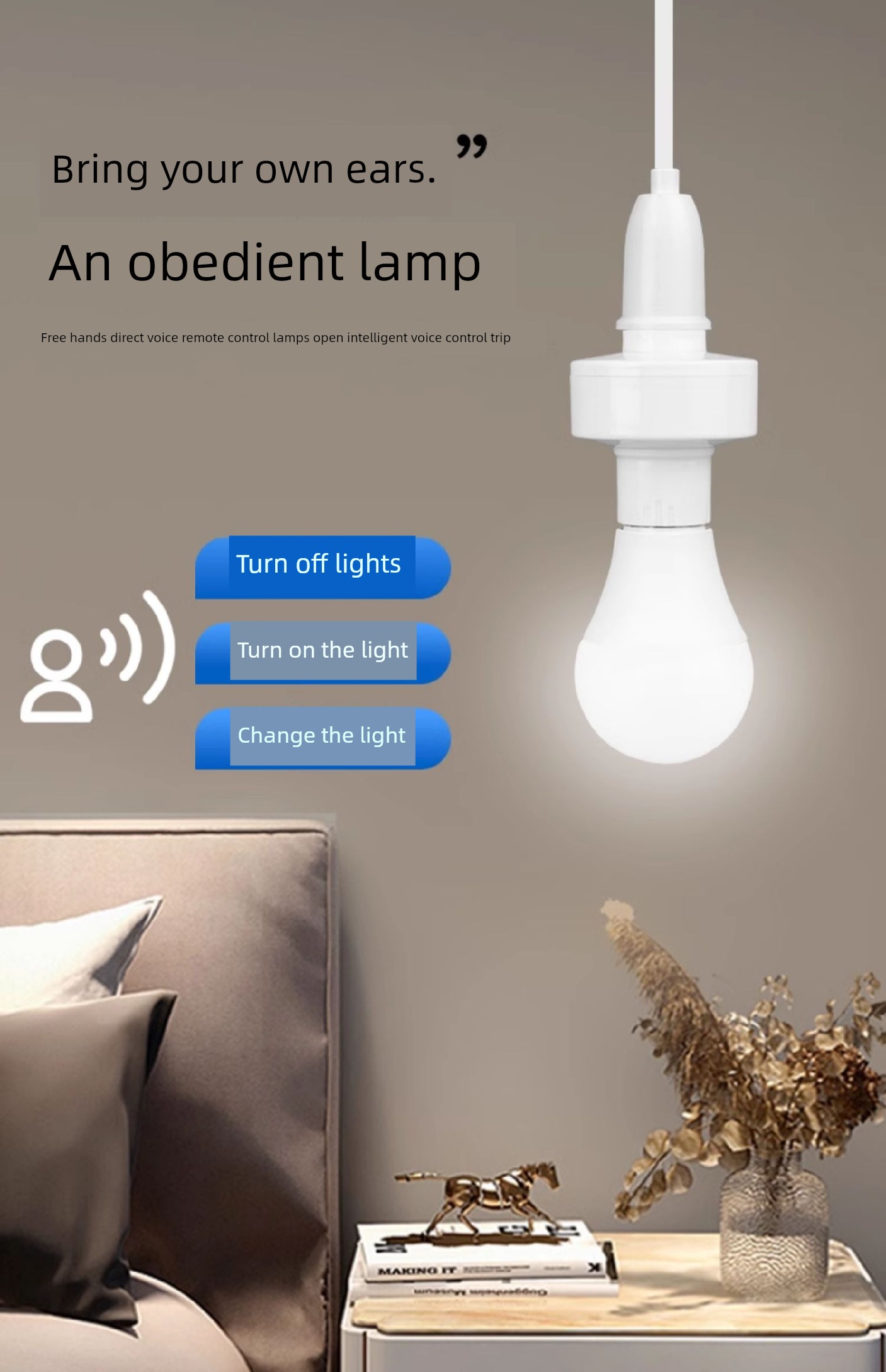 Intelligent Voice Lamp Holder Lamp Control Recognition Voice Control Bulb Wireless Screw E27 Neutral Switch Control Remote Control Lamp Holder