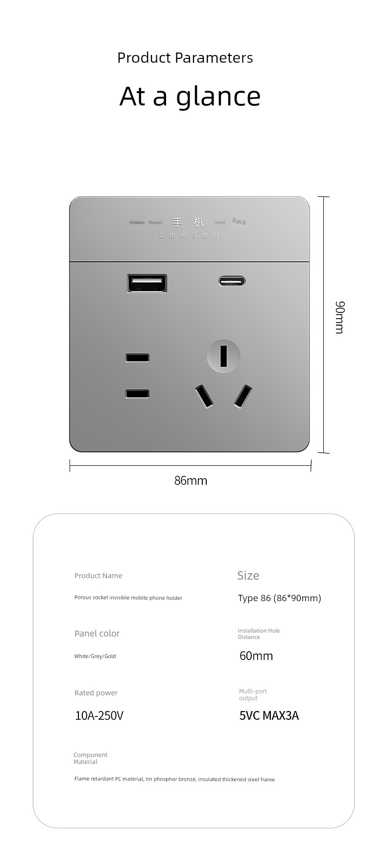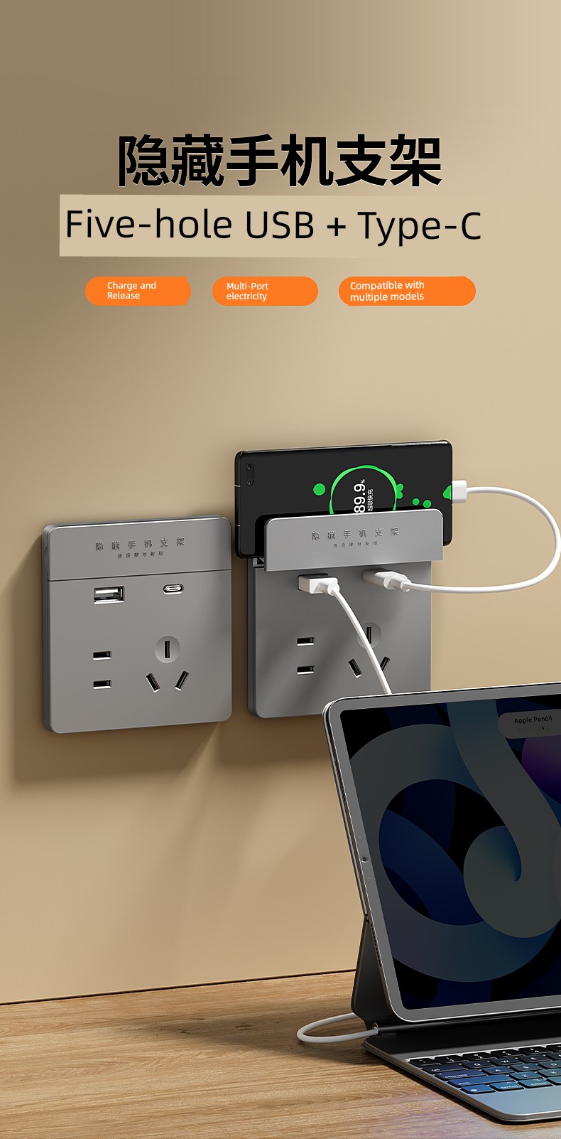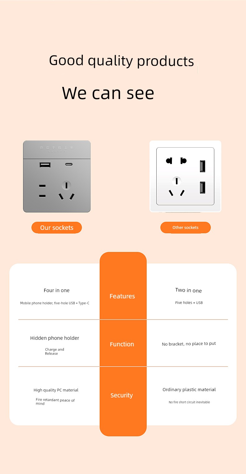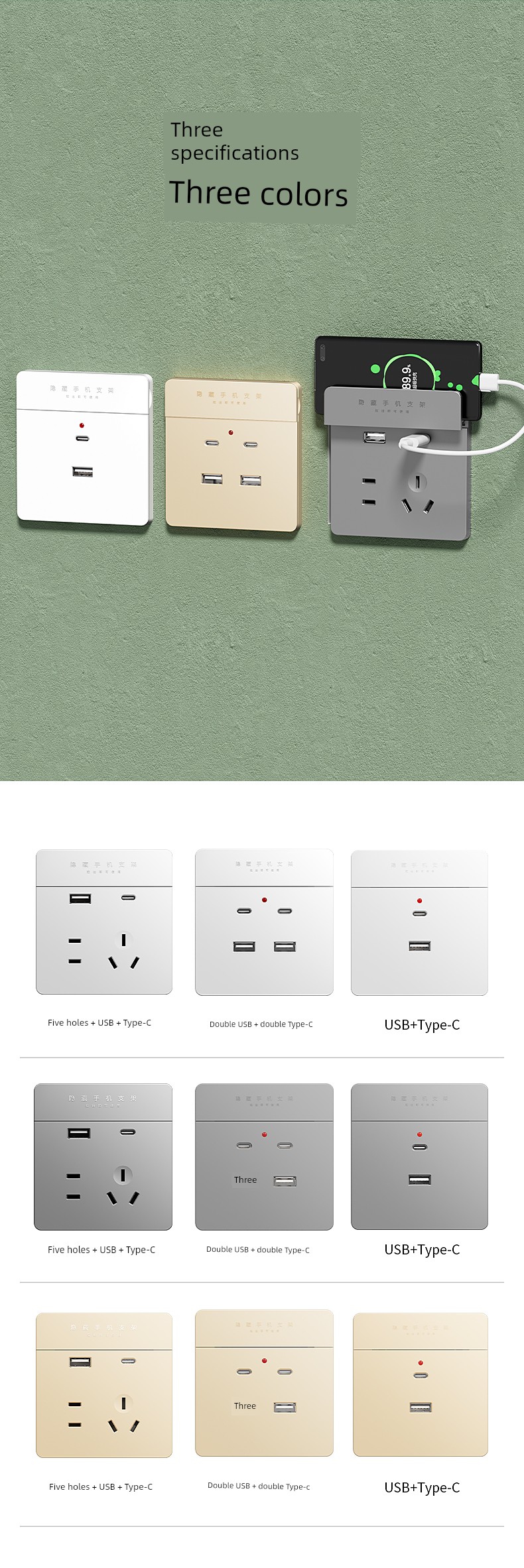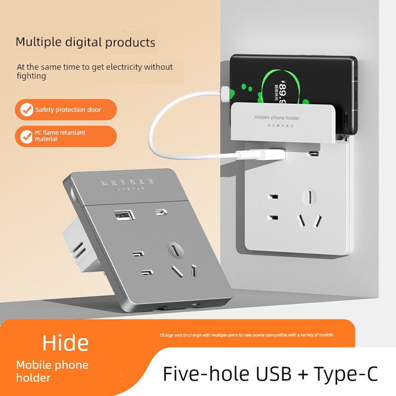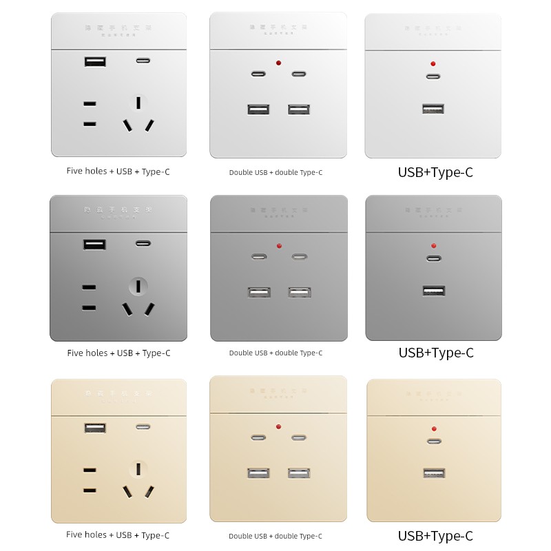International Electrician 86 Type Construction Site Dormitory USB Socket Fast Charge 20W Five-Hole Typec Socket Panel Mobile Phone Charging