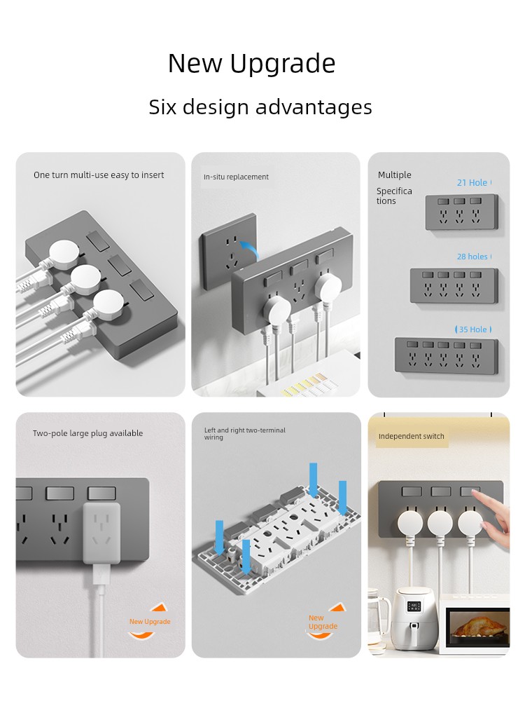 International Electrician 86-Type Extended Socket 21-Hole Kitchen Extended Porous Converter Track Socket Wireless Power Strip