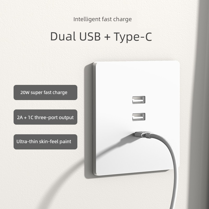 International Electrician 86 Type Fast Charge 20W with Type-c Socket Panel Switch with USB Interface Mobile Phone Charging For Home