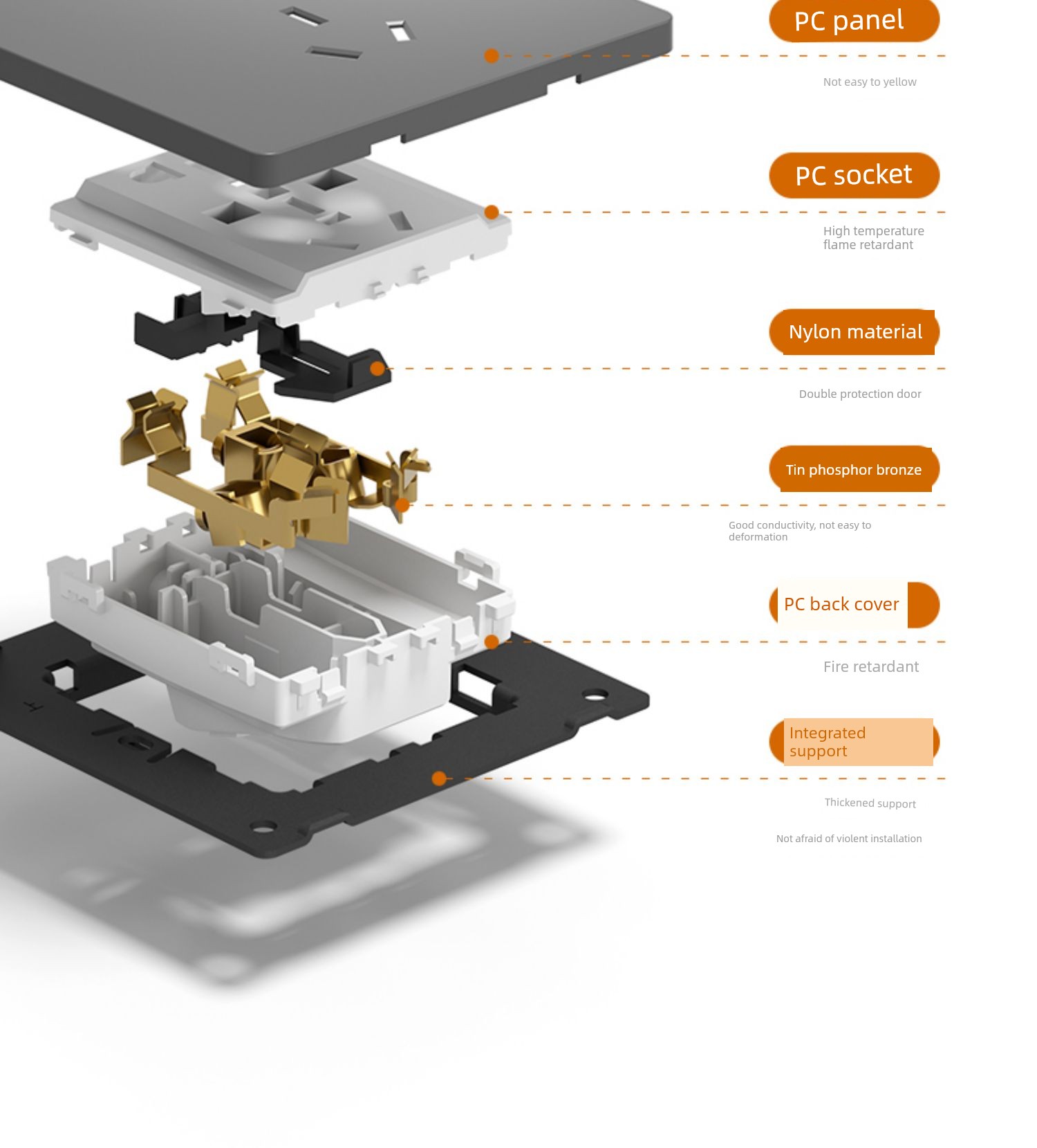 International Electrician 86 Type For Home Ultra-Thin White Switch Socket Panel Porous Band Single and Double Control One Open Five-Hole Socket