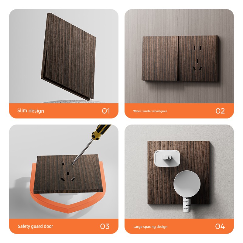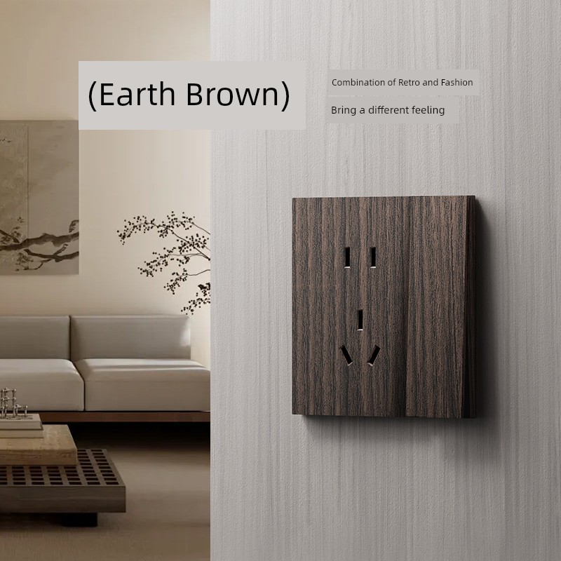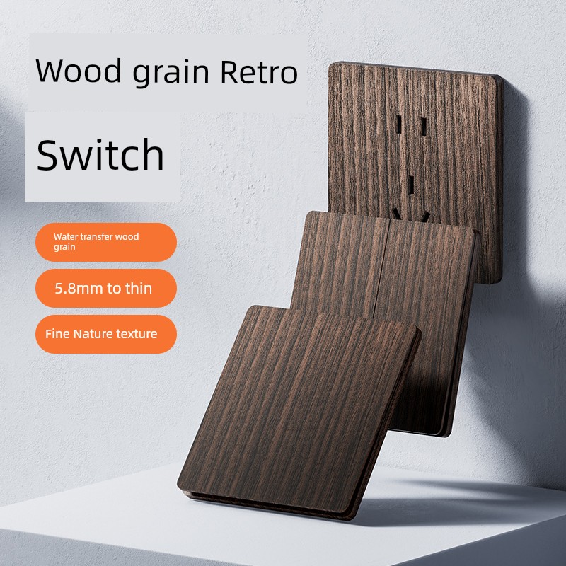 International Electrician Retro New Chinese Style Wood Grain 86 Type Switch Socket Panel One Single Open Double Control Five-Hole For Home B & B