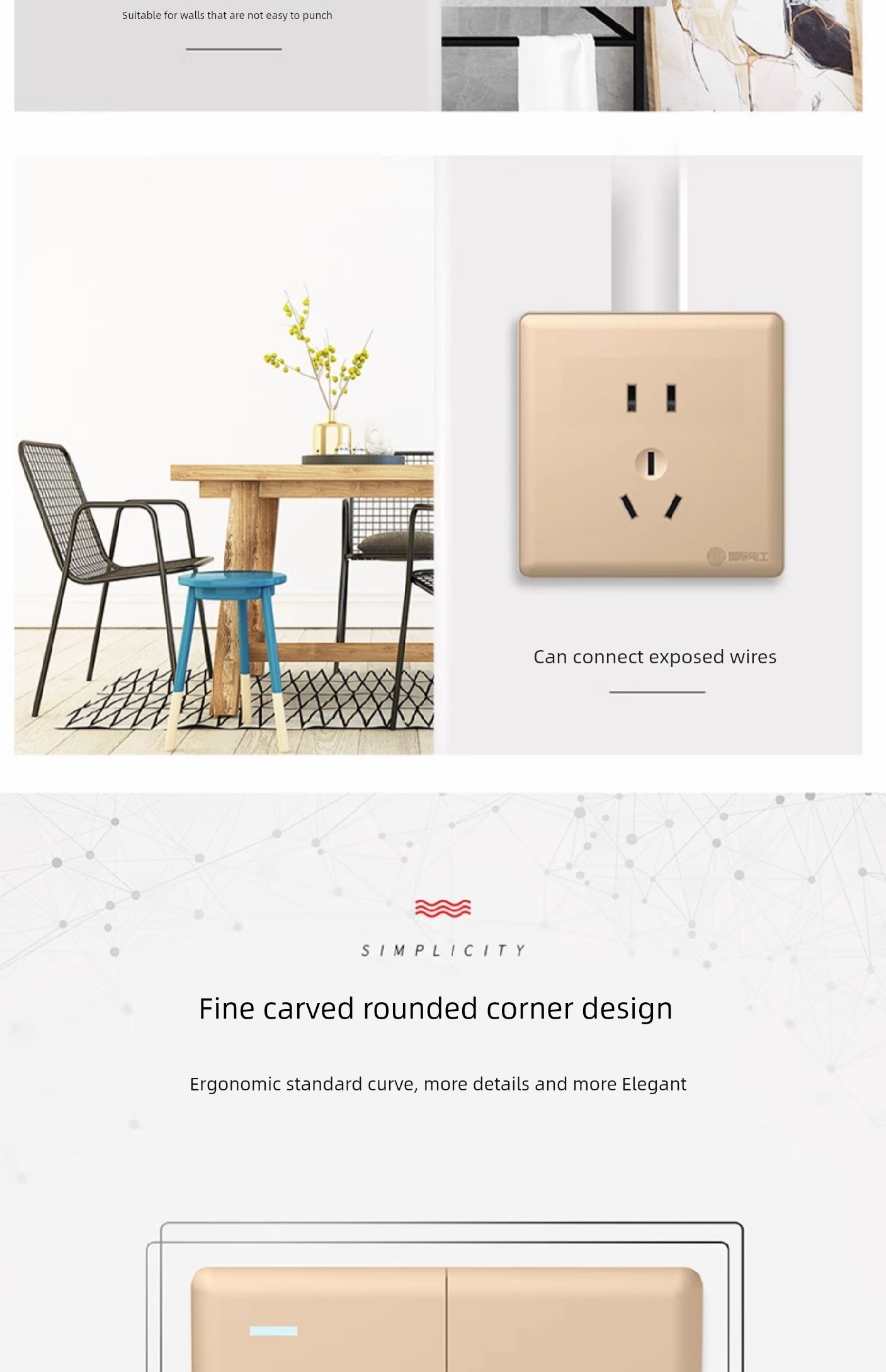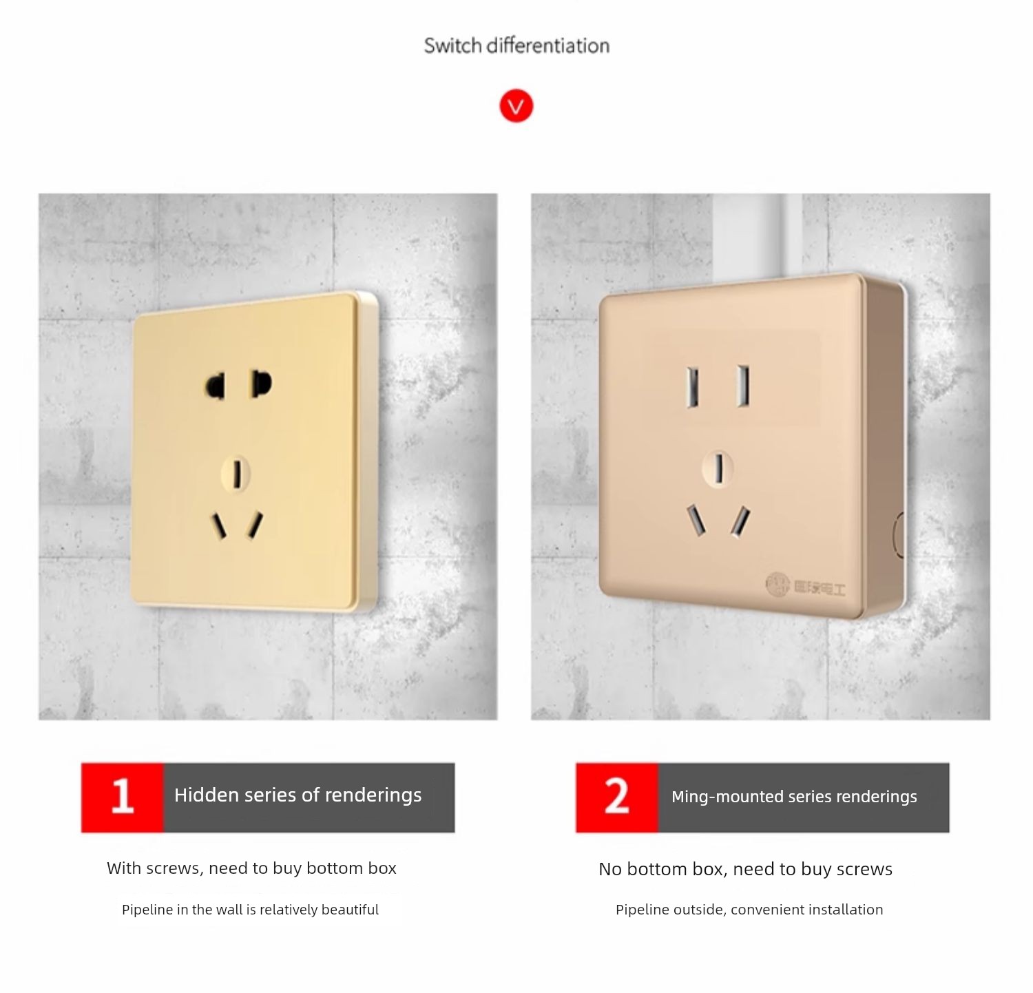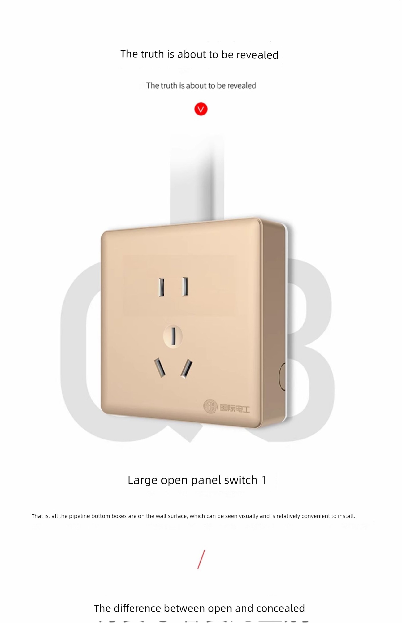 International Electrician Surface Mounted 5 Five-Hole Socket Open Wire Open Box Wall Porous For Home Ultra-Thin Panel with Switch