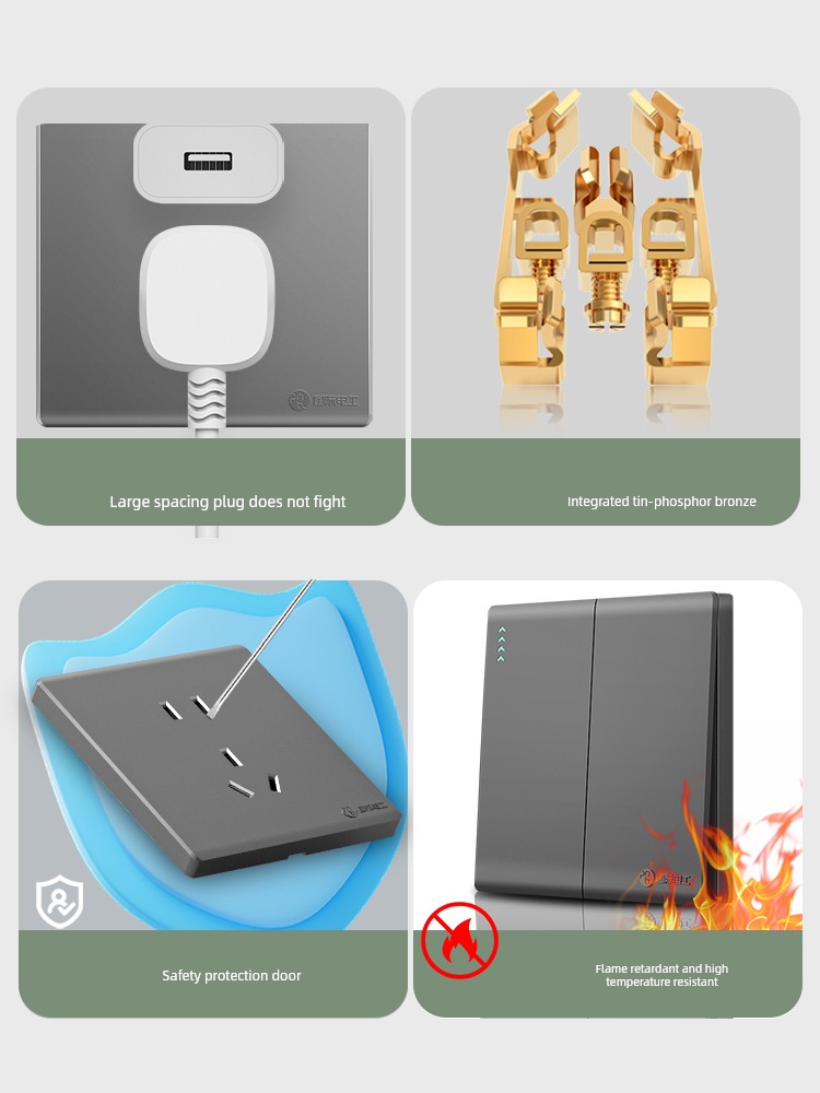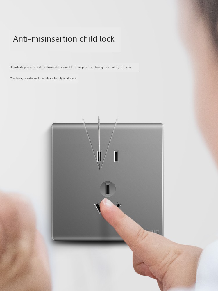 International Electrician Switch Socket Panel For Home Double Control Switch with Single Connection 5 Five-Hole Porous 16A Wall Concealed Whole House Package