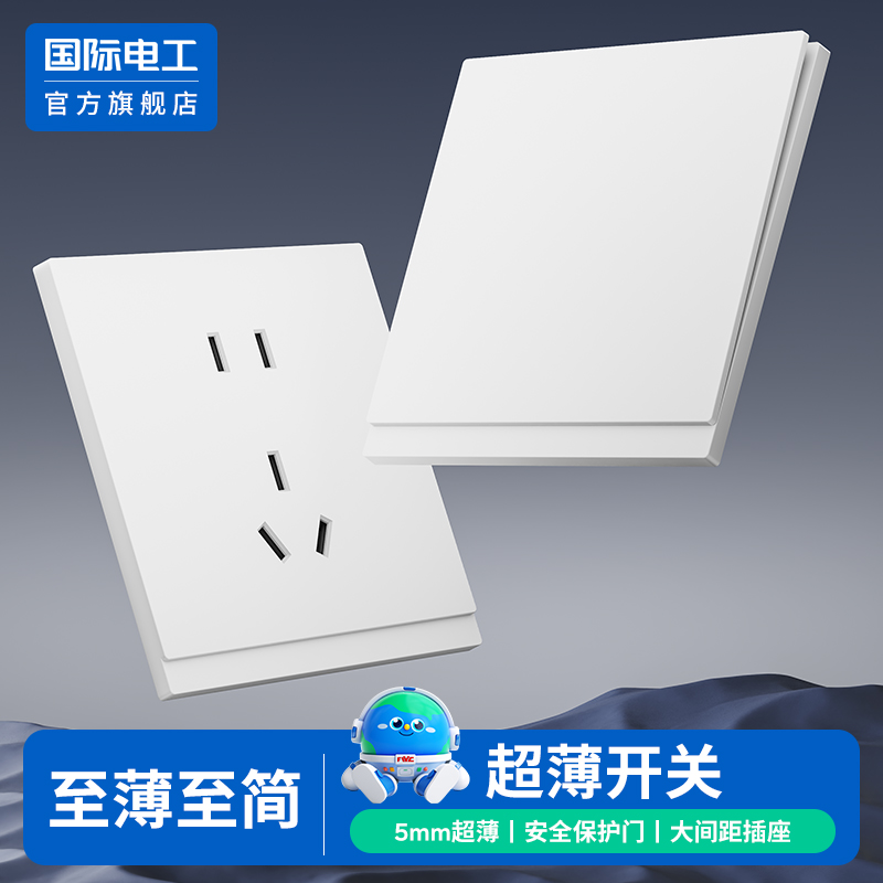 International Electrician Ultra-Thin 86-Type Switch Socket Panel One-Opening Five-Hole For Home Wall Concealed 16-Safety Three-Hole Socket