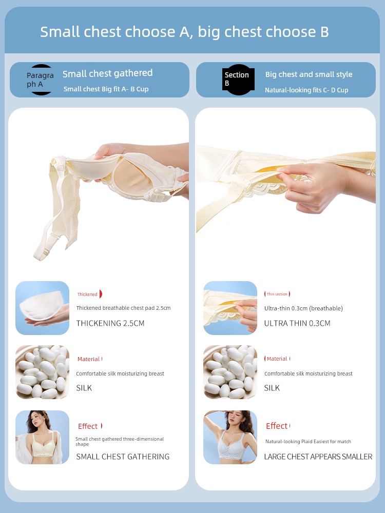 Intimates Women's Push up Small Size Big Wireless Thin Summer Breast Holding Push-up Sexy Lace Bra