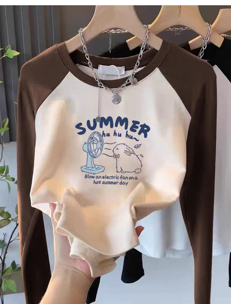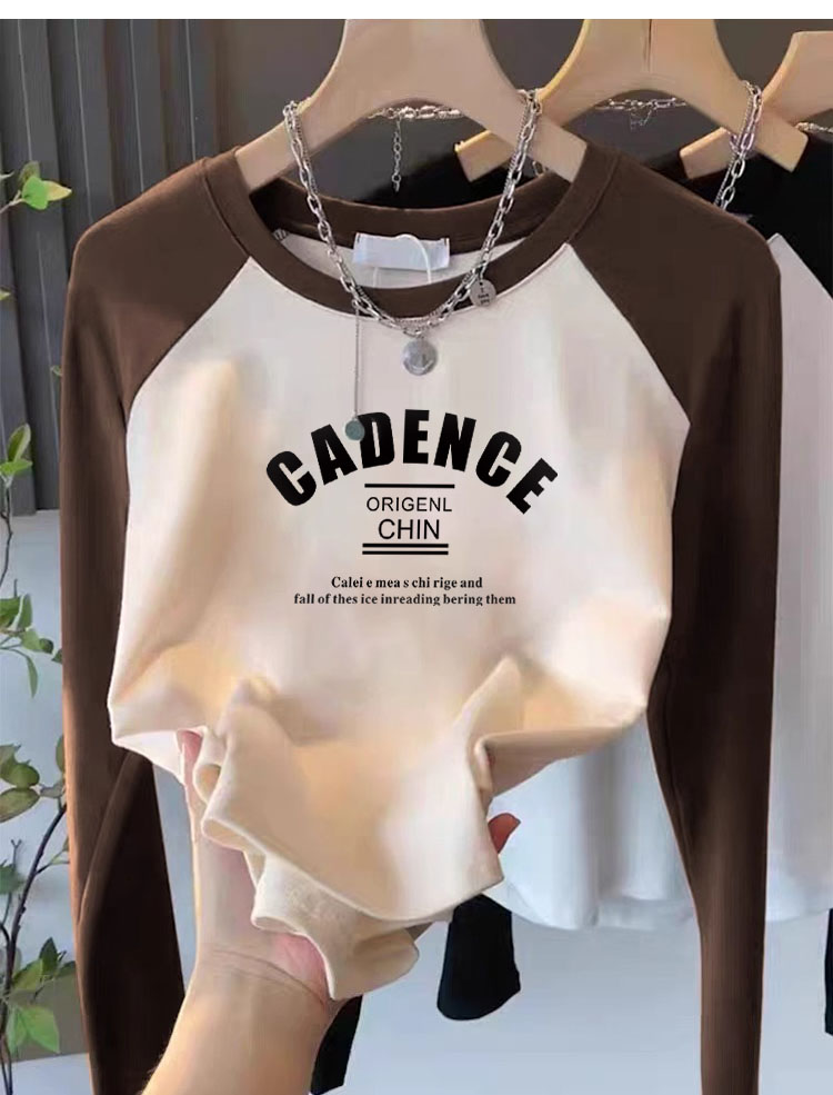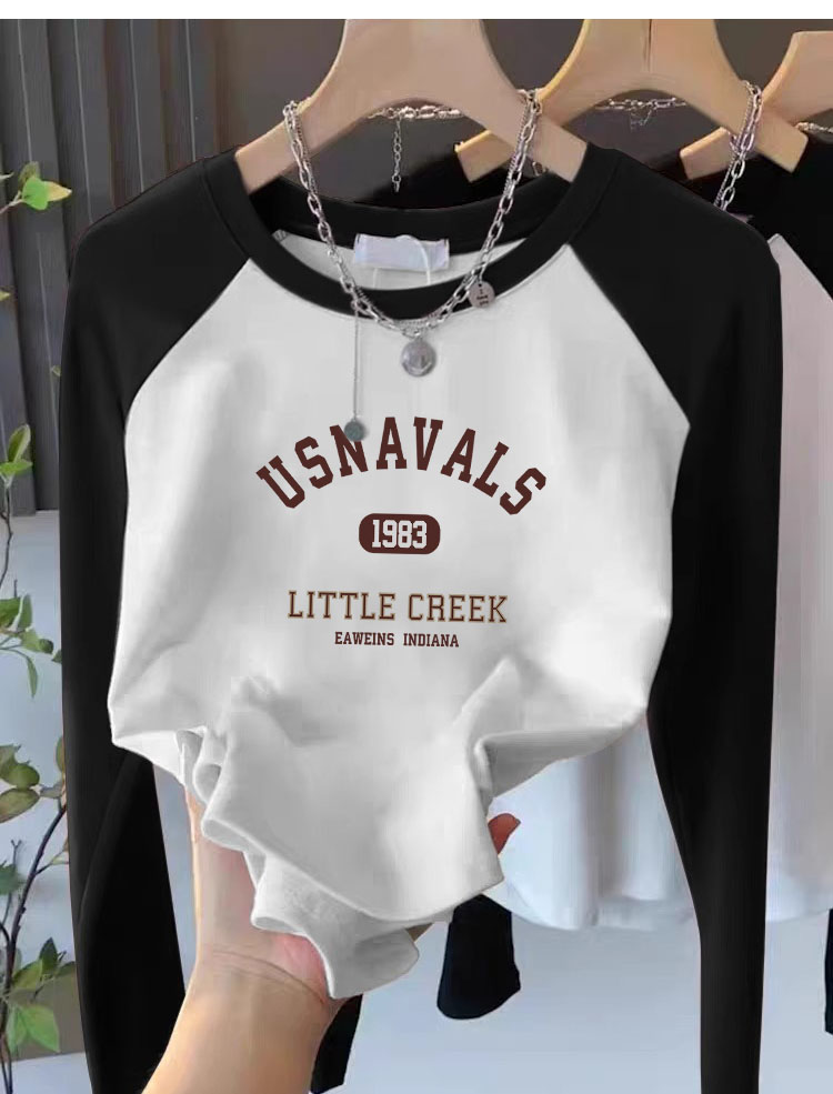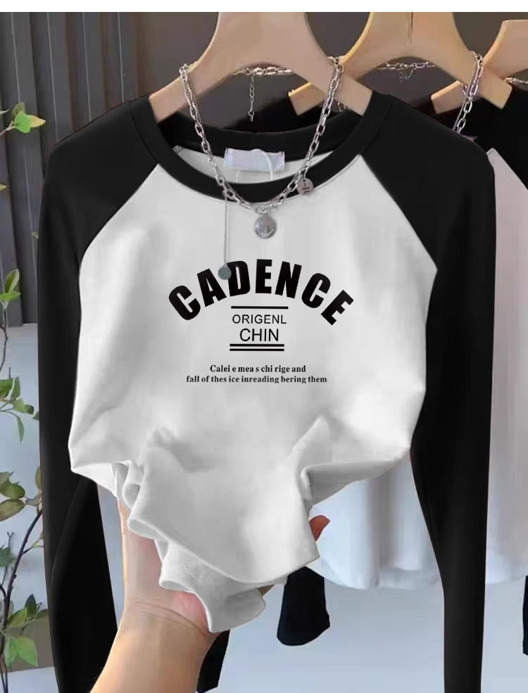 Irregular Design Raglan Contrast Color round Neck Tops Female Pure Cotton Slimming Inner Short-Sleeved T-shirt Spring and Autumn