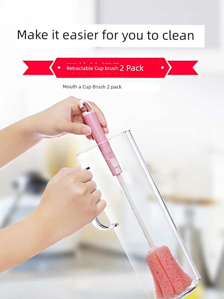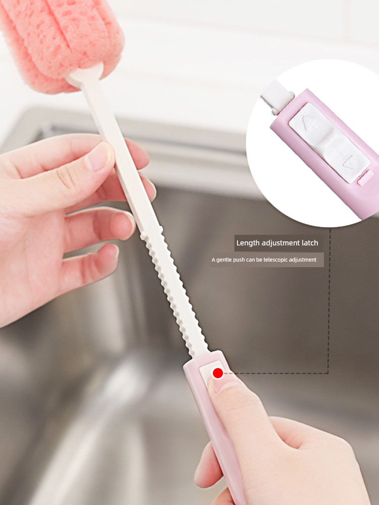 Japan Import Telescopic Long Handle Cup Brush For Home Sponge Cup Vacuum Cup Feeding Bottle Cup Brush Clean without Dead Angle