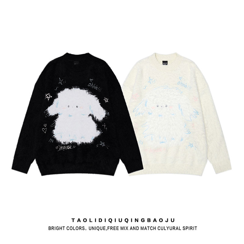 Japanese Cute Scrawl Puppy Imitated Mink Furry Sweater Female Winter Small Milk Huhoo Lazy Soft Glutinous Knitwear